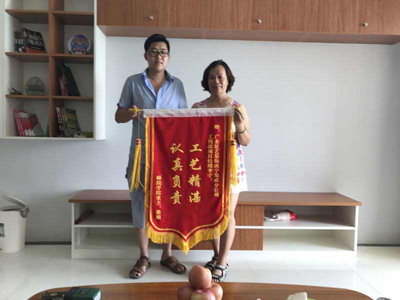 2017年9月2日,師范學院業主梁姐送來錦旗,贊揚廣東星藝裝飾南寧集成公司工程部項目經理李寧認真負責,工藝精湛。