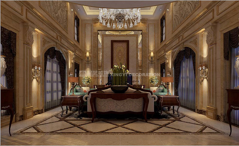 楓林藍(lán)岸600平裝修案例說明:該案是個(gè)舊房改造的別墅,因原結(jié)構(gòu)在使用過程有諸多的不方便及原有裝修的缺陷,我們將戶型重新做了合理的空間布局,改造使得空間的序列完整。經(jīng)過調(diào)整,把原有二樓戶外回廊納入整個(gè)大廳空間里面,使整個(gè)大廳更顯豪華大氣。該案傳遞一種低調(diào)奢華的生活方式,既有歐式生活的貴氣與精致,又無金碧輝煌的浮華。整個(gè)大宅的設(shè)計(jì)理念是奢華主義與現(xiàn)代浪漫主義的完美結(jié)合。流線形與直線相互搭配,現(xiàn)代而奢華的家具精美華麗,明亮的色彩相互交錯(cuò)。所有豪華的家飾,個(gè)性的墻紙相互呼應(yīng),此情此景充斥著浪漫的誘惑力,表現(xiàn)出王者的風(fēng)范。