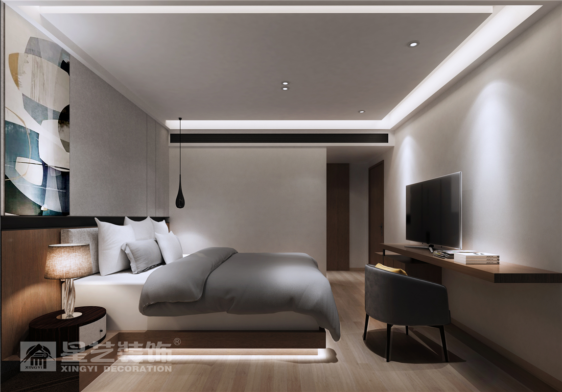 本案業主是一個建筑師,對生活品質要求極高,委托設計時希望能把家里設計成簡單實用,溫馨舒適的生活空間。寬大的窗戶設計使得房間光線更加明亮,顯得空間更加通透大氣,干凈利落。再搭配素雅灰色色調,原木色系的家具,大量運用收納柜,放置上書籍、美酒、獨特的裝飾品等,讓整個客廳和餐廳看起來非常的有層次,既有精致主義的質感又極富生活氣息。臥室延續了簡約舒適的風格,去除多余的擺飾裝潢,大片純白的墻壁搭配淺灰的背景墻,沒有一絲多余的色彩,簡練靜謐,看得出業主在極簡的生活里,十分注重睡眠質量。書房收納柜的設計將空間利用到極致,寬大的落地窗設計更顯通透明亮,無論是閑暇時的淺讀還是在家工作,都能讓業主有個賞心悅目的環境。