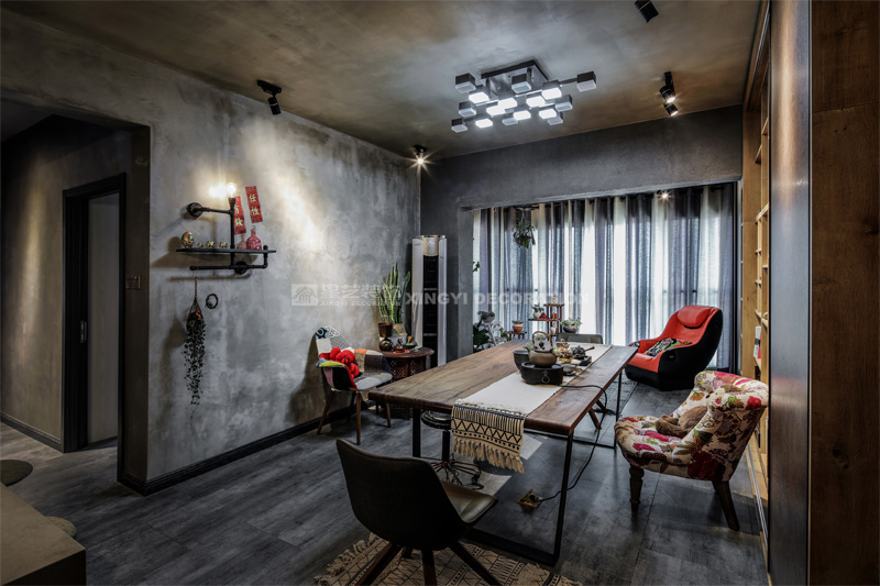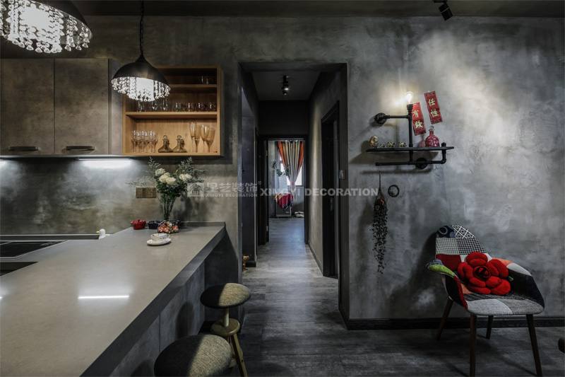 南寧星藝裝飾陶佳彤設計師專業設計的霖峰壹號90平工業風裝修實景完工案例,本案位于霖峰一號,屬于鳳嶺北地帶。業主是兩位中年夫妻,一個男孩。對于生活品質要求比較高,生活上飲食用具喝茶都是用銀壺和銀筷子。那業主是一位酷愛旅游喝茶和運動的文藝女青年,這個房子是用來偶爾度假休閑用的。所以整個空間里面看不到有沙發存在,剛才是接觸業主的時候,提到幾點,收納空間一定要多,不需要餐桌和沙發。每天都需要泡個美容澡。在布局上就把原來的陽臺封起來沒做成浴缸區域,那廚房和餐廳就可以連起來做成吧臺和櫥柜一體的造型。客廳區域做成滿滿一幅收納柜子滿足業主喝茶時候把所有的茶具,又可以做展示偶然。原來的大陽臺也納入客廳喝茶區,整個視覺都開闊起來了。清風吹起,香爐里的檀香,伴隨著音樂和業主泡好的茶,那就是人生的一個享受。