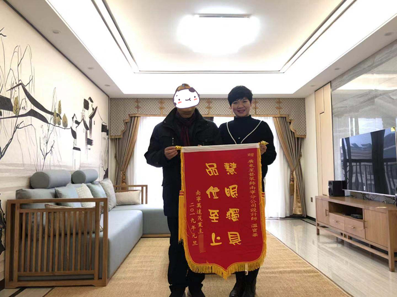 2019年元旦,星藝裝飾設計師溫寶華在萬達茂業主賀先生家中接受表彰錦旗,公司已有多個設計師受到業主的肯定和褒獎。錦旗內容:品味至上 慧眼獨具,這不是星藝裝飾的第一面錦旗,但也肯定不是最后一面的錦旗,紅艷艷的錦旗是星藝裝飾始終堅持顧客至上的服務理念的最好的回報,也是公司不斷發展、不斷裝的強勁動力,我們將繼續堅持“把裝修交給我們,您放心上班去”的宗旨,全新全新為每一位客戶服務,打造出更多的“放心工程”、“品質工程”,來回報我們的客戶。