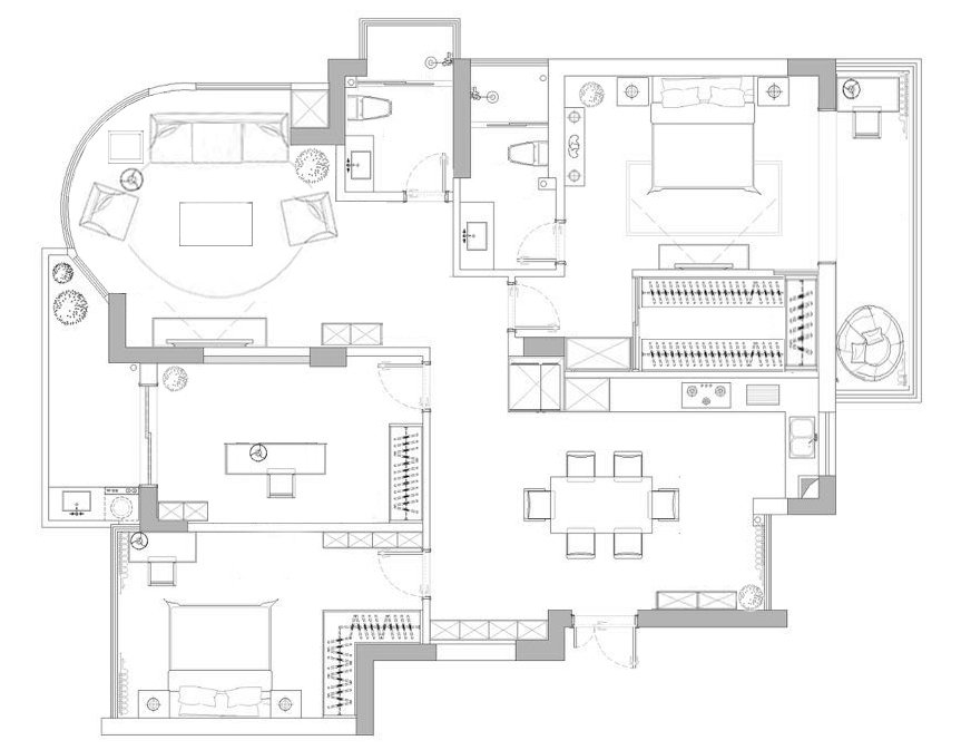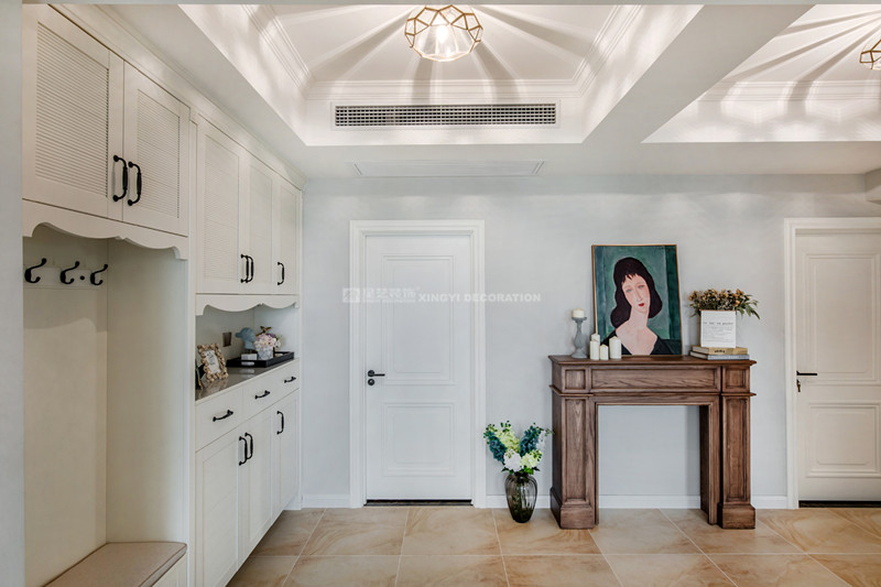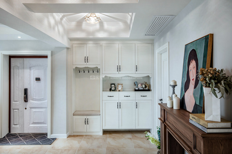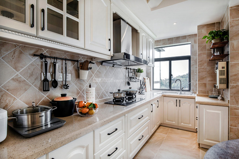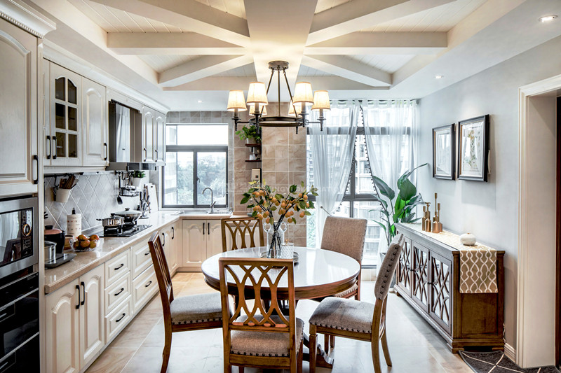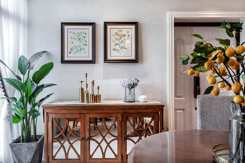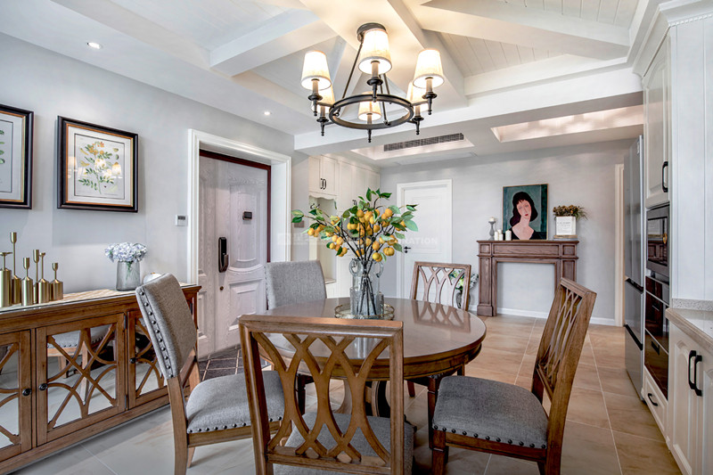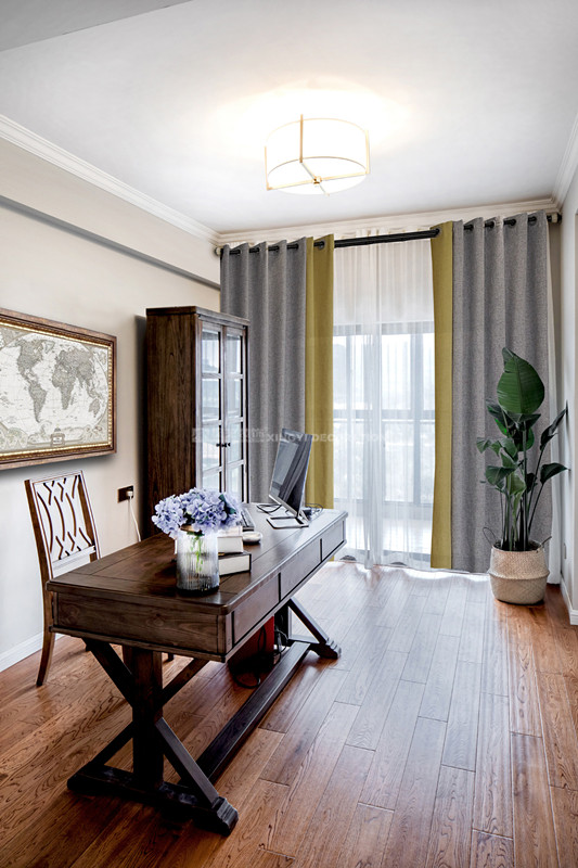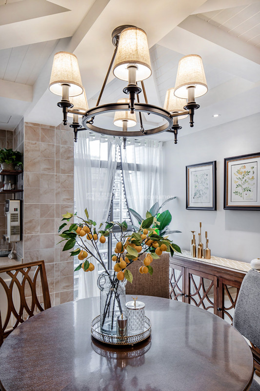 本次設(shè)計的案例坐落于美麗的青秀山腳下,南面的窗戶把優(yōu)美的風(fēng)景凈收眼底,正入冬季,當(dāng)暖暖的陽光灑下沙發(fā),有種被幸福籠罩的溫暖。通過和業(yè)主的溝通分析,戶型的合理與否,并不在于大小,而在于房屋各個部分之間的比例與布局關(guān)系。原戶型的布局并不合適他們一家三口的生活習(xí)慣及功能需求,所以在本案空間總體設(shè)計上進行了解構(gòu)重組,最終定位為簡美風(fēng)格。原客廳和主臥做了調(diào)換,主臥增加了衣帽間,把最美的落地窗風(fēng)景和采光留給了客廳,書房和小孩房把原過道外擴空間利用起來,廚房和餐廳打開融合到一起,公共空間動靜分離,洗手間干濕分離,生活陽臺留下了朝南的一面,另一個大陽臺直接納入到主臥作為化妝區(qū)使用。整個家居空間公私分區(qū),動區(qū)包括客廳、廚房、餐廳等,日常活動接待客人主要在動區(qū);靜區(qū)主要用于休息的隱私空間,包括臥室、書房、衛(wèi)生間、衣帽間等。每個房間的私密性與其功能都應(yīng)該是相輔相成的,并在總體格局上表現(xiàn)為一種依次遞增的趨勢。墻面硬裝上不加過多修飾與約束的美式風(fēng)格,淺色系的沙發(fā),木質(zhì)感的茶幾搭配一株綠色的植物,傳遞著簡潔舒適的氣息。在淡黃色光線的映襯下呈現(xiàn)出雅致浪漫的休閑式浪漫。開放式的廚房,懷舊感的墻磚,凸顯著美式風(fēng)格的自由,天花假梁的造型處理上別具一格。最終呈現(xiàn)出這樣一個自由隨意、簡潔懷舊、實用舒適的家居空間。