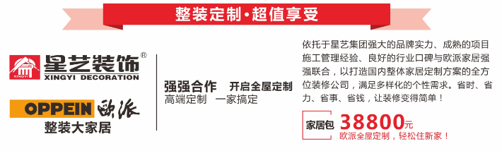 資金無憂禮:星藝裝飾作為中行、建行五星級合作商,活動期間簽單的工程,客戶可根據個人資信情況,在建設銀行、中國銀行辦理家裝分期付款業務,在享受以上優惠的基礎上,星藝再承擔1年期的利息/手續費(超出1年以上的手續費由客戶承擔),讓你資金更無憂更合理匹配。