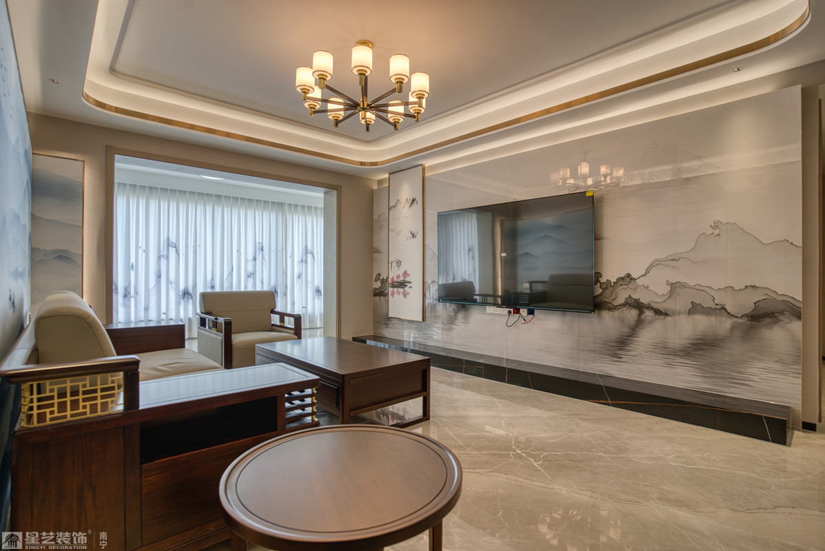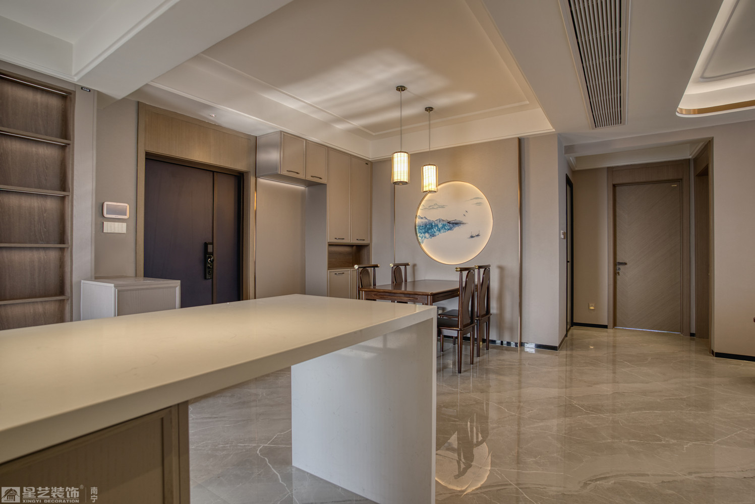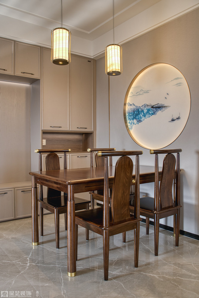 地區:保利冠江墅143平完工實景 樓盤:保利冠江墅 風格:新中式 戶型:四居 面積:143平 預算:半包+點餐21萬 設計:周兵 該案例由 項目經理:執行