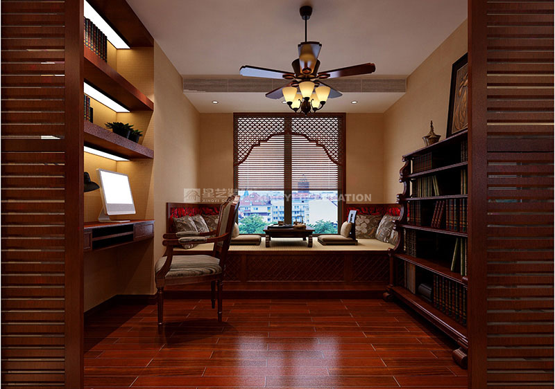 在配飾上,使用白色、金色、黃色、暗紅等色調。少量白色糅合,使色彩看起來明亮、大方,使整個空間給人以開放、寬容的非凡氣度,讓人絲毫不顯