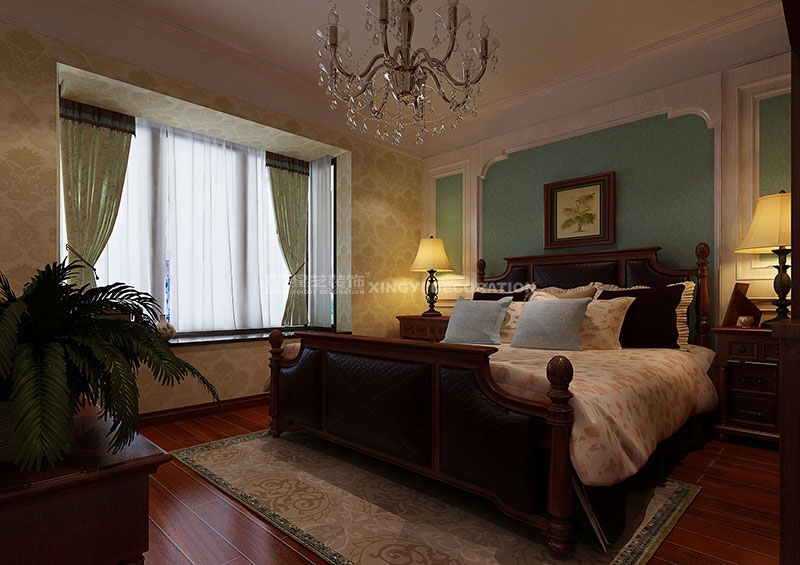 在設計上,墻面大面積的使用了古典歐式色彩的壁紙配合經過提煉的歐式線條,使歐式不再是遙遠的過去,而是鮮活時尚的品味象征。復雜的歐式護墻板使用了提煉過的實木線條勾勒出線框,把護墻板的形式裝飾到極致。