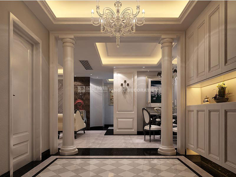 低調奢華的場域氛圍,可以由材質、顏色、家具、飾品軟件等組構而成。再通過細膩的手法有效安排的格局,以"生活"的設計的基調,衍生出空間典雅不凡的專屬精致景況。本案為三居室,新古典風格,融合古典與現代的設計元素。家具線條清晰、明朗,與墻體經典圖案相互呼應。全室以沉穩的溫暖色和灰色為基調,應用空間產生出內斂感,奢華感的新古典風格。