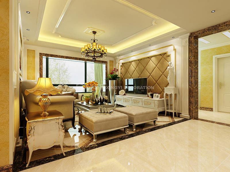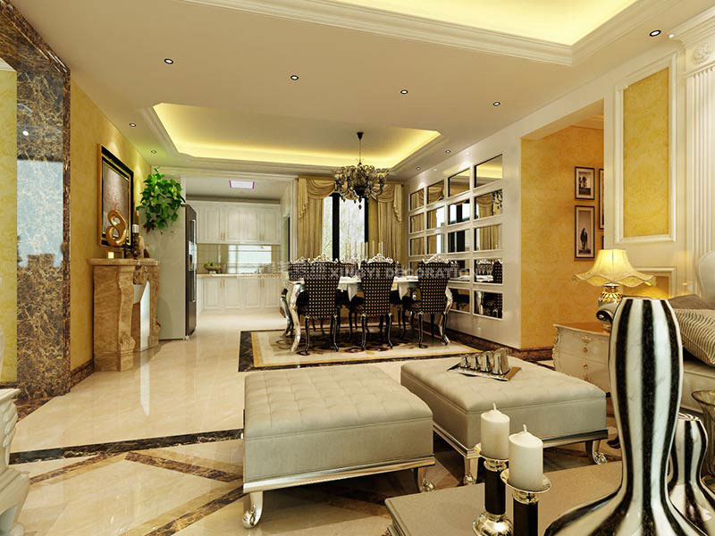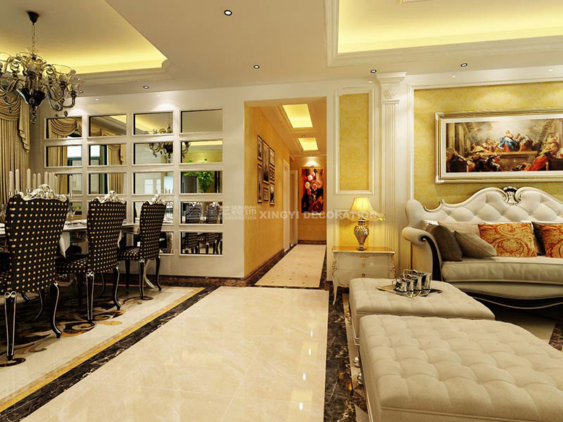 設計說明:本案位于桂雅路的盛天華府,業主是一位成功人士,在事業和生活上都是一位佼佼者。對于生活是一位相當有追求的業主.本方案運用淺色的鵝黃為主,貫穿整個設計方案。營造典雅、自然、高貴的氣質、溫馨的情調是本案的主題。在材質上運用暖色的軟包,配著白色護墻板和淺灰色的線條,給整個空間增加浪漫的氛圍。家具選宮廷式的沙發,把整個空間的高貴提現得淋漓盡致。在這樣的氛圍來一杯紅酒,放著環繞音樂,是一種美的享受
