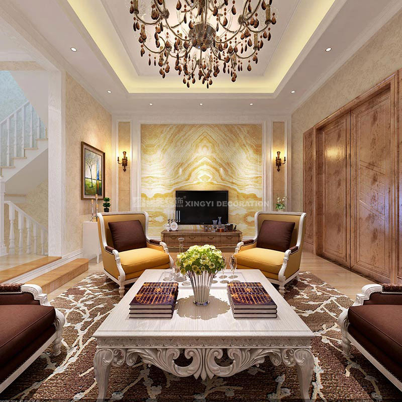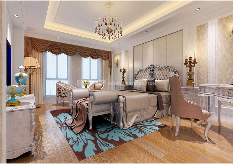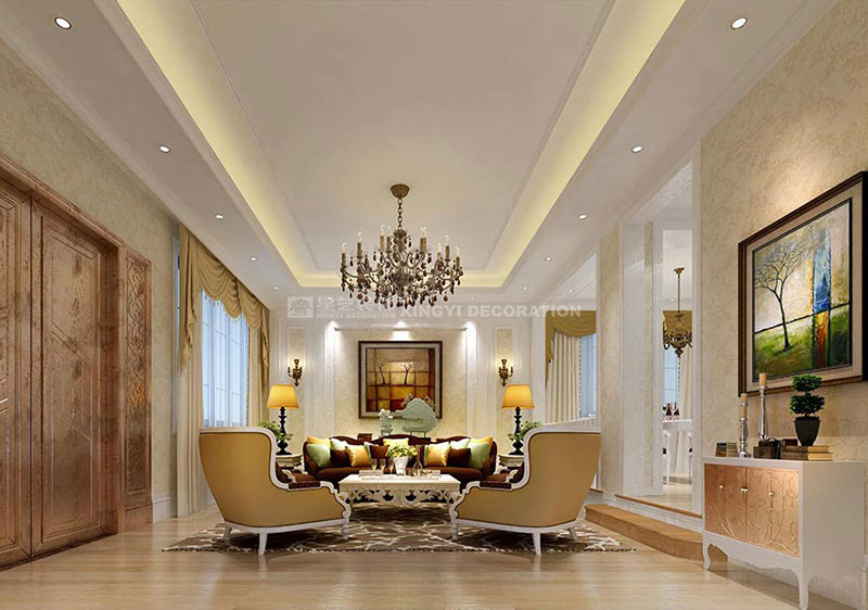 同時,歐式裝飾風格最適用于本套大面積房子,若空間太小,不但無法展現其風格勢氣,反而對生活在其間的人造成一種壓迫感。歐式風格很講究造型門的造型設計,包括房間的門和各種柜門,既要突出凹凸感,又要有優美的弧線,兩種造型相映感趣,風情萬種。當然,還要具有一定的美學素養,才能善用歐式風格,否則只會弄巧成拙。墻面用優質墻紙,地面材料以石材和地板為主。歐式客廳用家具和軟裝飾來營造整體效果以襯托豪華效果。布藝沙發組合有著絲絨的質感以及流暢的木質曲線,將傳統歐式家居的奢華與現代家居的實用性完美地結合。壁燈自然不可或缺,它被安置在空間的交匯處,又與一大幅色彩鮮艷的油畫相呼應,給敞開式的客廳提供了一個新的亮點。大面積的玻璃窗帶來了良好的采光,落地的窗簾很是氣派。在設計上追求空間變化的連續性和形體變化的層次感,室內多采用帶有圖案的壁紙、地毯、窗簾(簡約歐式風格窗簾的代表花型是大馬士革)、床罩、帳幔及古典裝飾畫,體現華麗的風格。