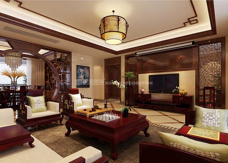 盛天東郡211平中式風格裝修案例設計說明