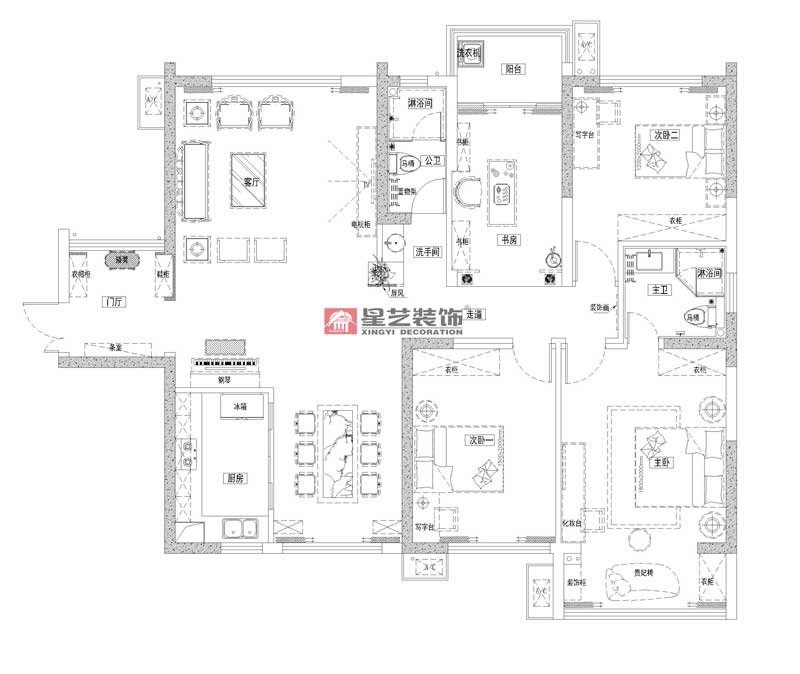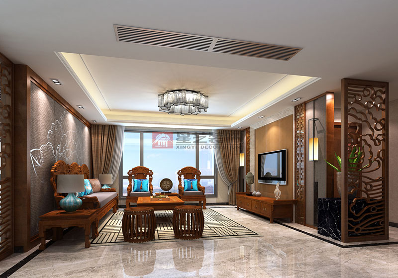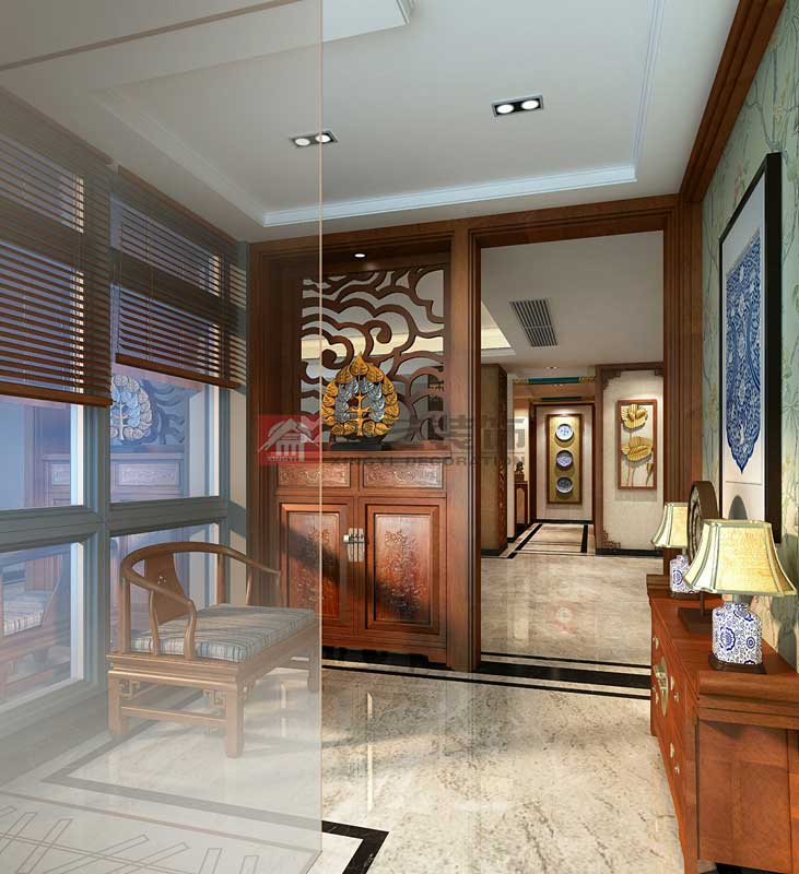 客戶年齡40歲左右,研究生學歷,國企的中層領導,經常出差國外,但始終喜歡中國文化,喜歡中式紅木家具,但是家的空間又不能太古典,所以在設計上為了更好的融入中式紅木家具,通過功能需求結合一些中式古建筑的元素,從顏色、材質、配飾等方面進行現代手法的處理,使整個空間即使有中式風格的氛圍,但又不會感覺古樸、壓抑、拘謹。