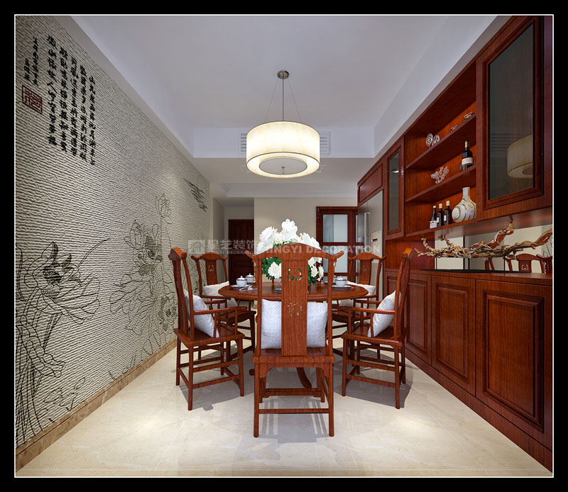 本案位于五像新區地段,是一個環境優雅的高端小區.兩位業主對于紅木家具特別喜歡,所以本案定義為中式。平面上這個戶型的缺點在于餐廳小,廚房小。本案例原來是4房,但是業主一家3口人,所以設計時候,把臥室做成套間的形式,讓睡眠區與衣帽間區域分開。動靜結合。本戶型相對來說餐廳和廚房比較小,根據業主的居住需求,喜歡大氣的餐廳,所以平面上把其中一件房間用來做餐廳。原來的廚房往原餐廳挪動600空分的位置擴大廚房空間。所以本案改造后的廚房面積大了很多,既方便,又能滿足男業主喜歡下廚,好客,大氣的餐廳廚房需求。