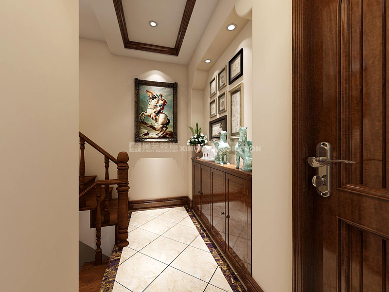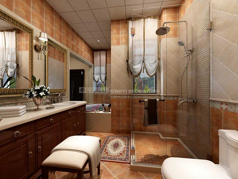 風(fēng)格上為了中西結(jié)合傳統(tǒng)一點(diǎn),所有采用了美式風(fēng)格,傳統(tǒng)的壁燈,圓弧的造型,美式花磚等都會(huì)出現(xiàn)。
