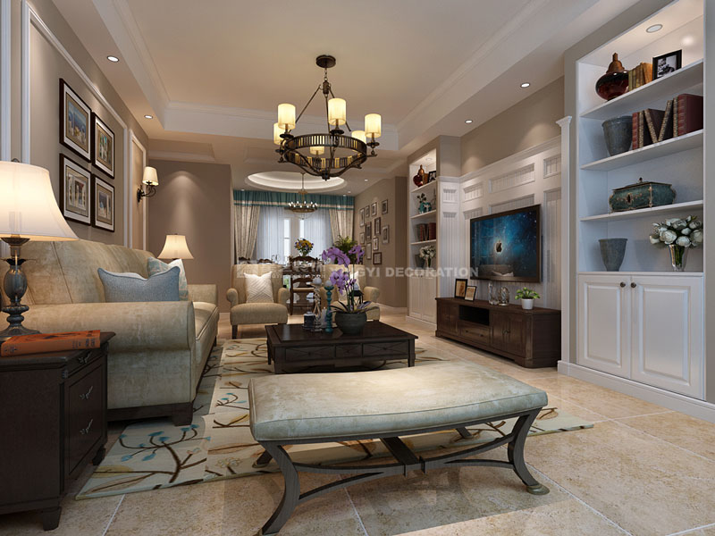 美式風格遵循輕松休閑的感覺,以奶茶色調的墻面為主,搭配適當的輔助光設計和墻面的點綴造型讓整個空間生動起來,一家人其樂融融的用餐時,看著照片墻上留下的美好回憶,這就是對家幸福溫馨美好的體現