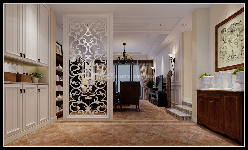主材用料:仿古磚,拋釉磚,橡木地板,石膏線等
