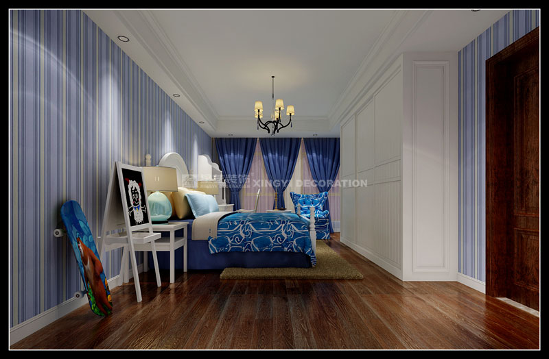 在色彩以及風(fēng)格設(shè)計(jì)方面,設(shè)計(jì)融合了業(yè)主方提出的西方美學(xué)思想和結(jié)合他的生活理念方向進(jìn)行設(shè)計(jì),主要為溫馨的黃色加配上賞心愉目藍(lán)色為主調(diào),為整個(gè)空間增添了豐富的視覺(jué)效果。