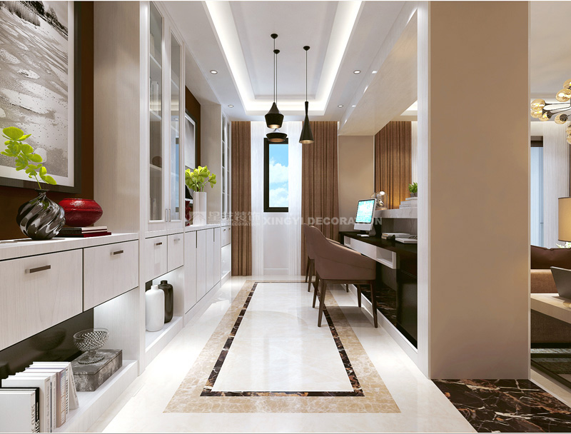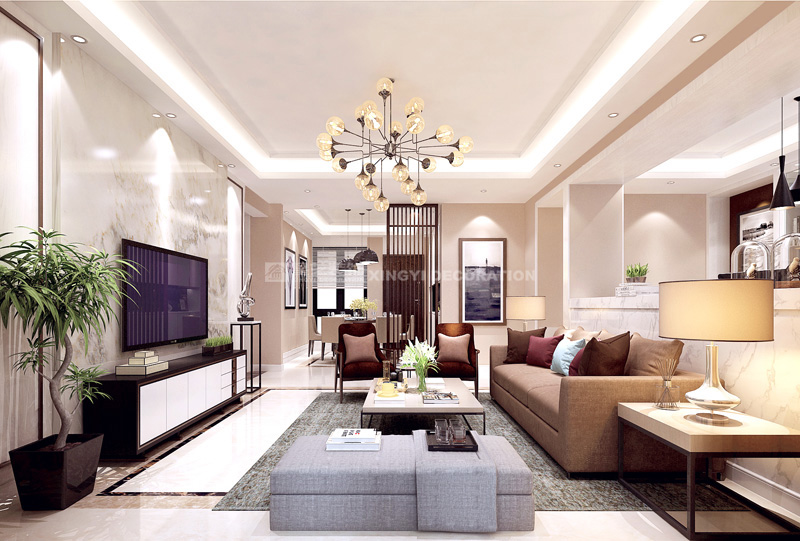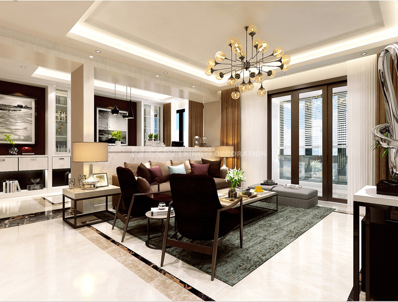其實家真正的意義,不只是成員上的組成,最重要的是感情與生活上的交流。設計想法中除了要感同身受的以居住者去思考生活,也需要從‘生活本質’為出發點,串聯出新的體驗。其實家真正的意義,不只是成員上的組成,最重要的是感情與生活上的交流。設計想法中除了要感同身受的以居住者去思考生活,也需要從‘生活本質’為出發點,串聯出新的體驗??臻g架構分為情感交流的公共區域以及靜謐獨立的私密空間兩個部分,公共區域經由垂直軸線的劃分,南向開始以客廳、餐廳所組成,盡可能保留景觀面的廣闊視角。除此之外,設計師還極力摒除多余的色彩、造型,用來減少視覺上的局促。為主的公共空間使用偏淺色系的石材與溫潤的木皮做為主色調,在這之上沒有太多的裝飾,而只是呈現石材原始的紋理與色澤,將木質的溫暖感受烘托出來,讓置身于此的人可以無負擔的遠離都市喧囂。