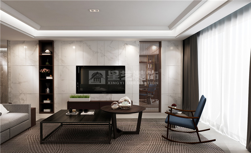 本案的業主我個人非常崇拜他,做事情認真執著,旅游的時候收藏了很多茶壺,喜歡簡約中式家具但又不喜歡繁瑣的裝飾,希望通過簡約的裝飾把他的收藏和家具能夠融入進去。我通過對展示柜的獨特設計和中式元素的一些精簡提煉,讓整個設計保留中式文化的獨特韻味同時又有簡約大氣的視覺沖擊!