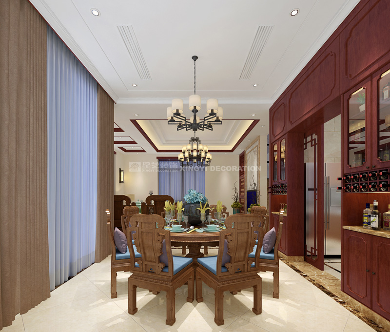 南寧星藝裝飾甘盧華設計師專業設計的350平別墅中式裝修案例