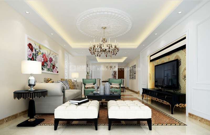 南寧星藝裝飾甘盧華設計師專業設計的云星錢隆首府140平簡歐風格裝修案例
