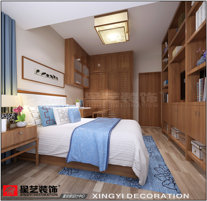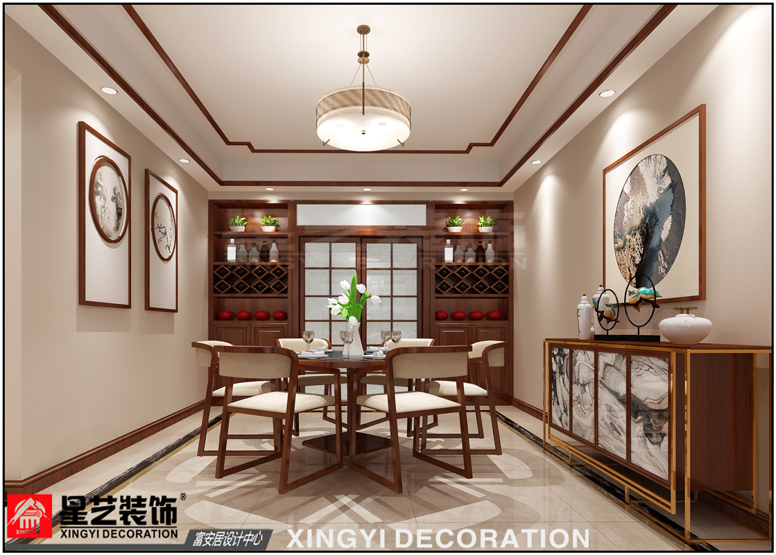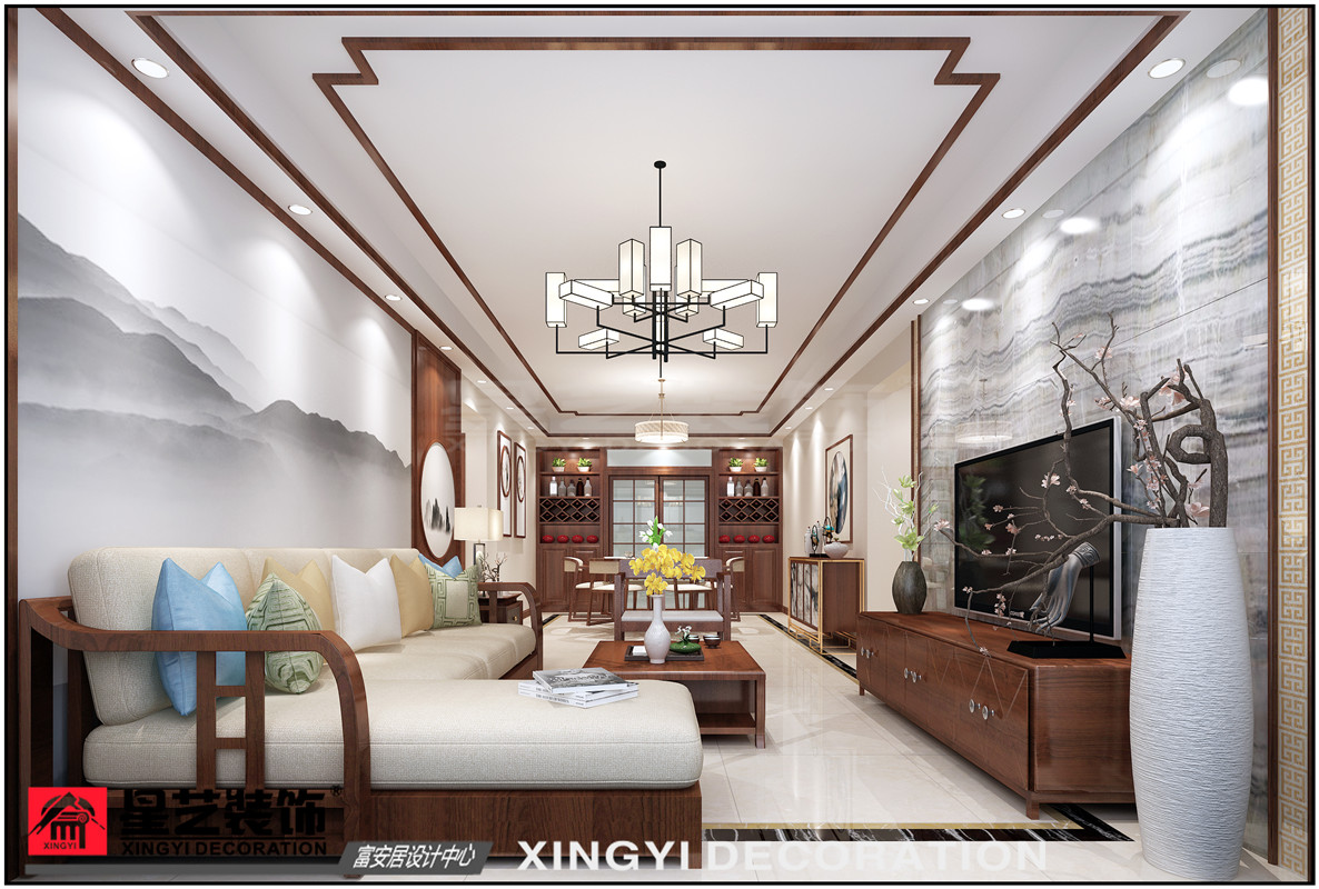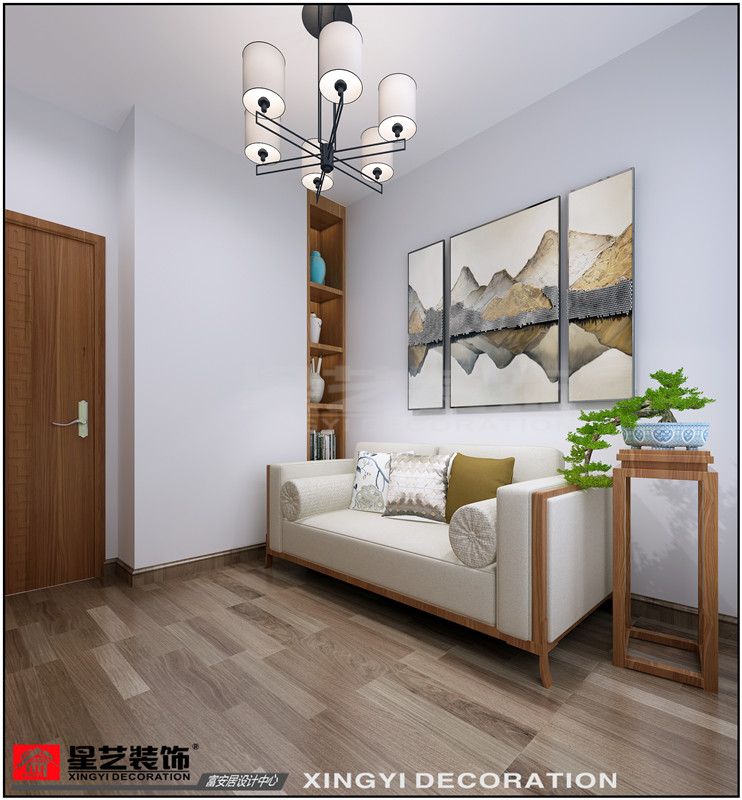 南寧星藝裝飾設(shè)計(jì)師專(zhuān)業(yè)設(shè)計(jì)的瀚林學(xué)府130平中式風(fēng)格裝修案例,山水畫(huà)的硅藻泥,水紋磚上墻,中式裝飾畫(huà)的營(yíng)造,及頂面紅木色的實(shí)木線(xiàn)條,追求中式的內(nèi)斂、樸素。