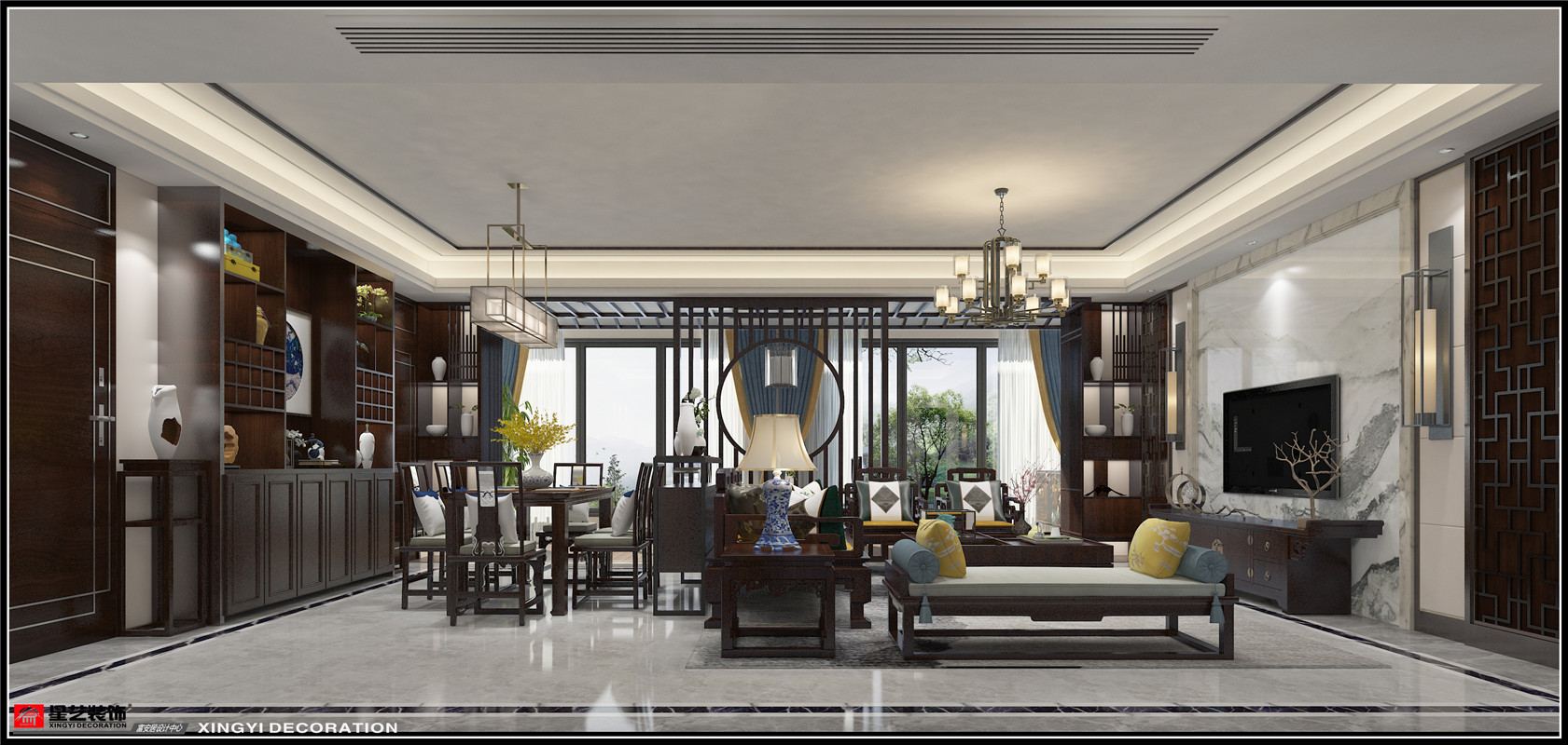 南寧星藝裝飾設(shè)計(jì)師專業(yè)設(shè)計(jì)的江灣山語城170平中式風(fēng)格裝修案例,以實(shí)木元素運(yùn)用整體空間,色彩以紅色,淡黃色以及多種顏色的搭配,爵士白的大理石,木質(zhì)格柵,加上特有的山水畫配合,空間點(diǎn)綴材質(zhì)烘托氛圍。