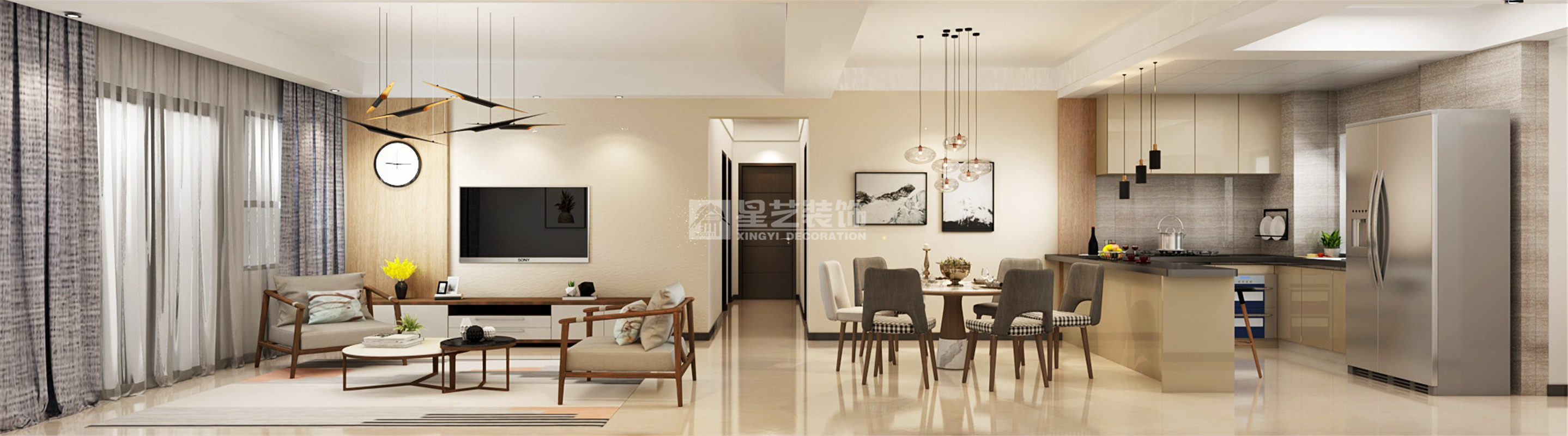 客戶要求做一個開放式廚房,餐廳希望有一個圓桌象征團團圓圓,喜歡中式家具又不希望做出來的感覺過于厚重。