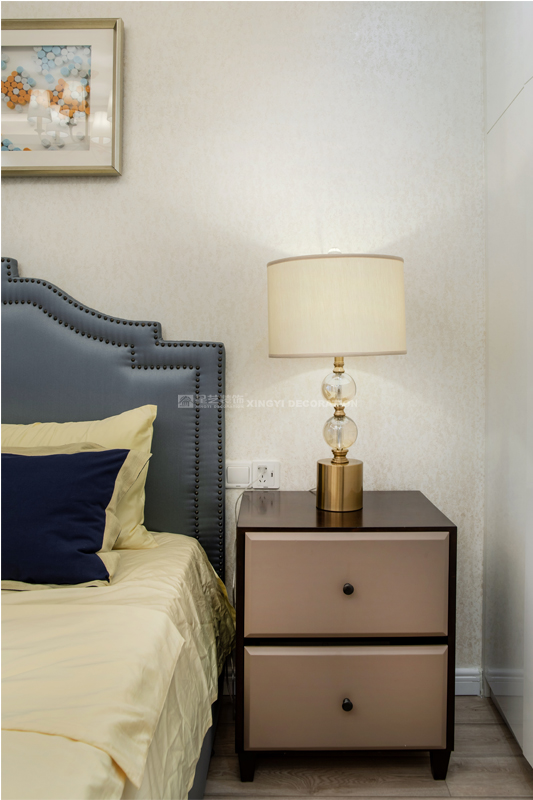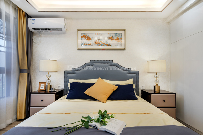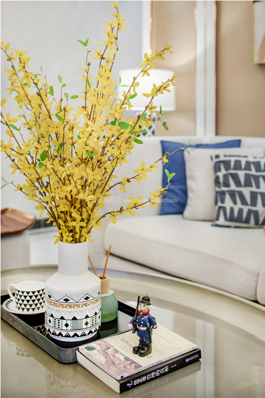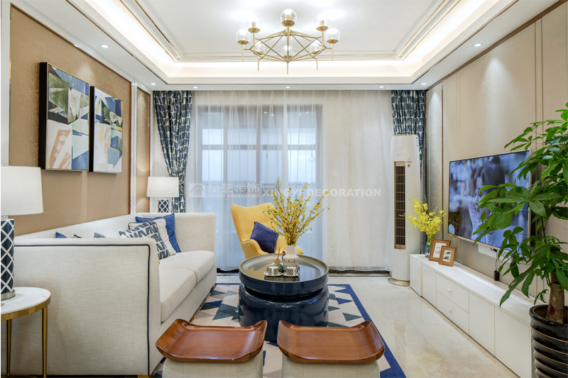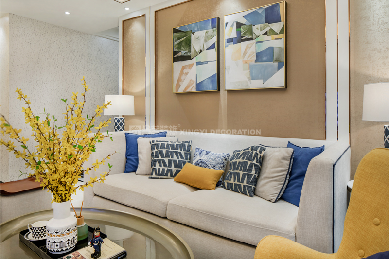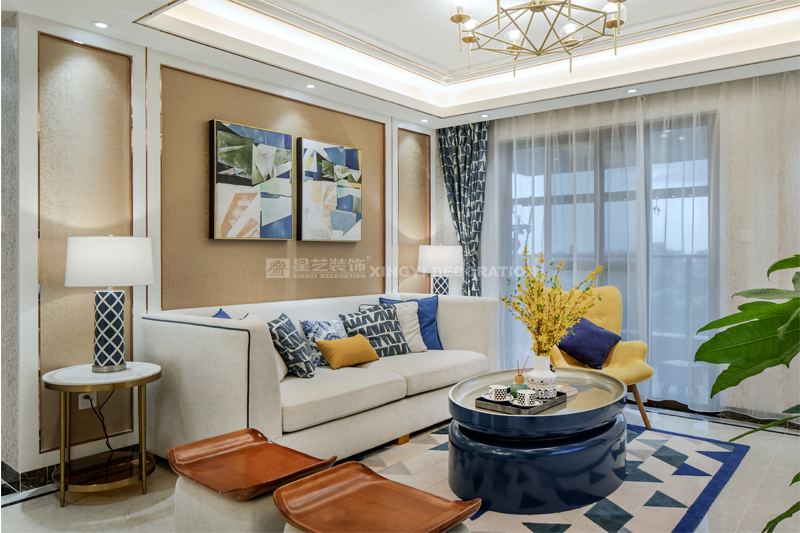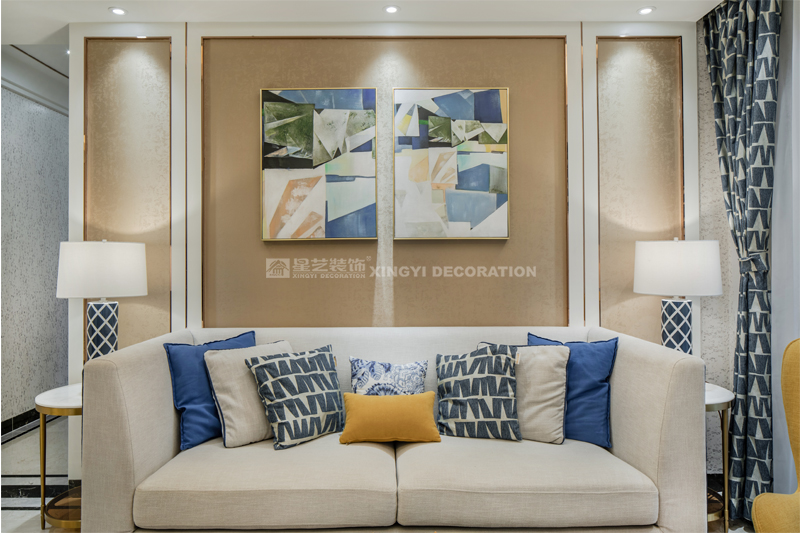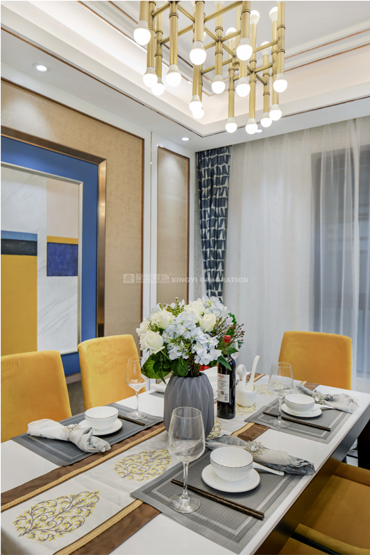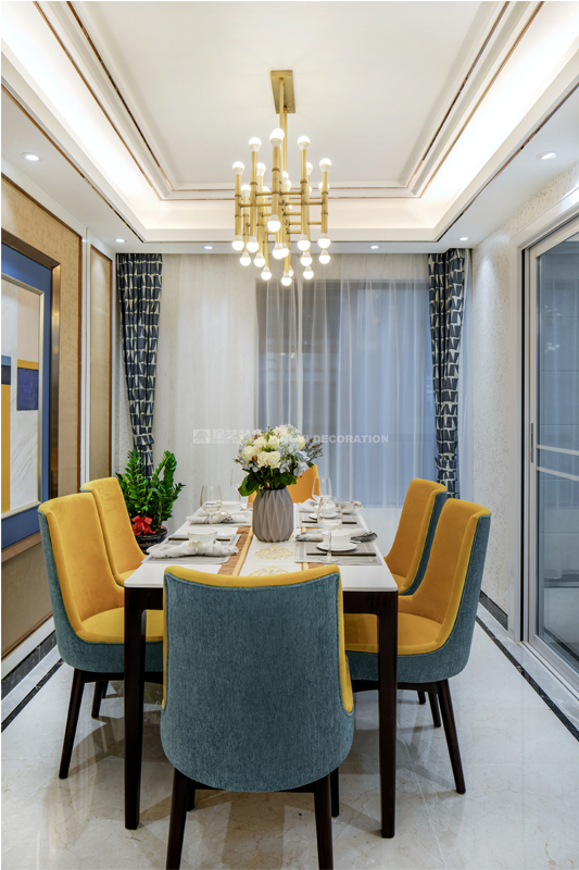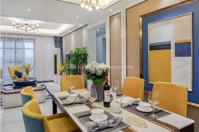 南寧星藝裝飾陶佳彤設計師專業設計的榮和悅瀾山109平后現代裝修完工實景案例,本案位于長虹路。業主是一對新婚小夫妻,剛開始接觸的時候,這個美女業主也是做設計的。對于設計的思路是很明確。所以我們整個房子的定調是后現代輕奢。整個房子以白色為基調,電視背景墻用的是淺咖啡的軟包加玫瑰金做一個線條的分割呈現。沙發背景和餐廳背景主色調用淺咖啡色藝術紋理涂料主打,側邊用護墻板的造型側面用玫瑰金收口。提現一種時尚又不失端莊的味道。我們的吊頂,背景都用了精致的玫瑰金來做貫穿呼應點綴。當我們回到家,打開客廳燈,反射在玫瑰金上的柔而晶瑩的感覺,配著亞麻松軟的布藝家具。營造的年輕人對精致生活的向往。 這是經歷了一天疲倦緊張的工作后,和愛的人一起做飯,一起看電視,一起面對未來的溫暖的憧憬。年輕人的心態是很有沖勁的,所以我們在整個家的色調上,用的是飛燕草藍和佛手黃的一個大膽撞色。給人呈現一個時尚的家。這個大膽的顏色大膽的用在了家具和畫上的呈現。作品之所以能完成度那么高,每一個家具和軟配都是專門外地專業團隊定制公司回來的。這個作品施工過程中細節的制作上是要求很高所以返工也有幾次。不過設計師每次做一個作品也是在設計中成長。