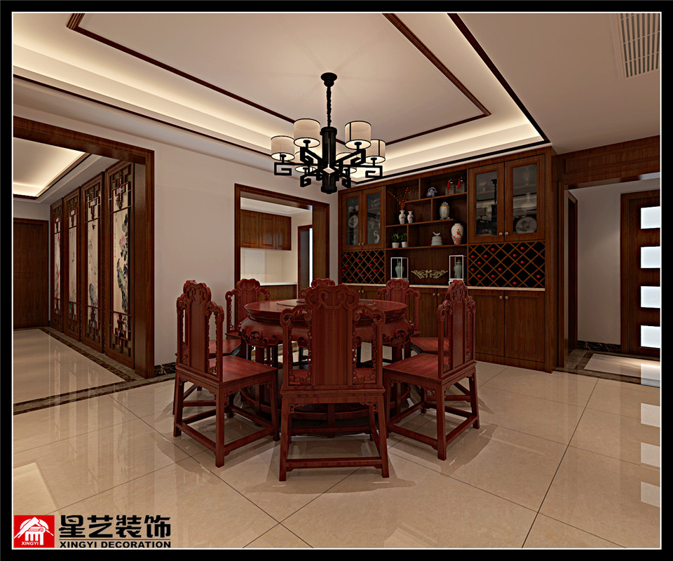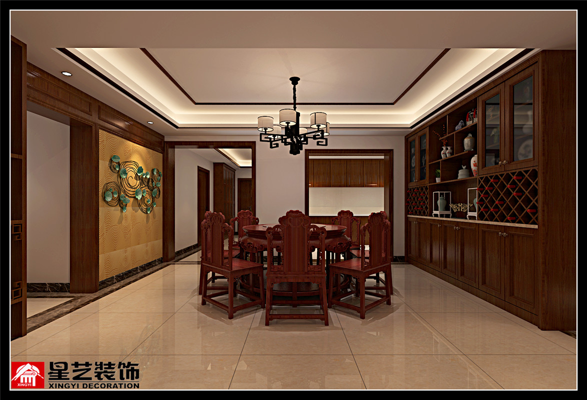 南寧星藝裝飾馬瓏萍設計師專業設計的保利大江郡180平中式風格裝修案例,這位業主非常有意思,是名四川人在廣西定居,有一對非常靈氣的龍鳳胎,她把兩個大套間讓出來給兒女住,自己住稍微小一點的房間,面朝陽臺,偶爾早晨可以朝江做做瑜伽,十分愜意。由于是精裝房,因此原結構沒有調動,客戶喜歡傳統中式的味道,定位為中式風格,全房裝飾主題圍繞著山水、花卉、喜鳥、營造一種詩情畫意的意境,小孩房則依據年輕兒女喜好做了偏為時尚的設計。在入戶長過道的設計上,我花了個小心思,將業主名字中帶的菊字容入設計中,把入戶長過道打造成了畫廊,以木飾雕花作畫框,加入黑鏡,帶些靈動,畫框內裱上梅蘭竹菊的中式水墨畫,悠然雅致。