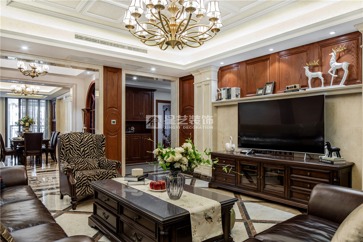 客廳作為待客區域,通常請求簡練明快,一同裝飾較其它空間要更明快光鮮,通常運用很多的石材和木飾面裝飾;美國人喜歡有前史感的東西,這不只反映在軟裝擺件上對仿古藝術品的喜歡,一同也反映在裝飾上對各種仿古墻地磚、石材的偏心和對各種仿舊技能的尋求上。全體而言,美式田園風格的客廳是寬闊而賦有前史氣味的。