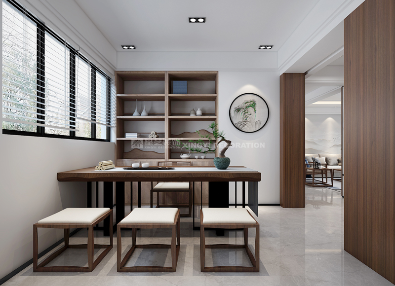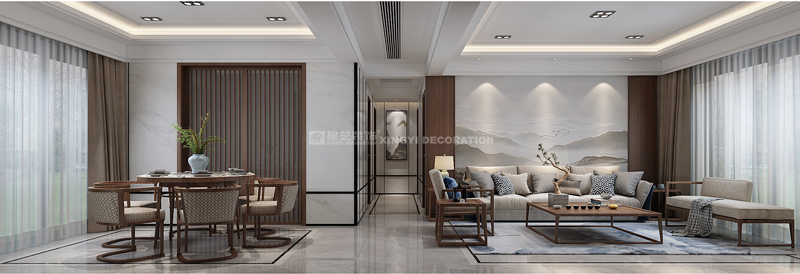 南寧星藝裝飾曾相山設(shè)計師專業(yè)設(shè)計的瀚林學府125平新中式裝修案例客戶一家4口人,喜歡傳統(tǒng)的中式文化,但又想不失時尚,所以結(jié)合現(xiàn)代設(shè)計了一套新中式裝修,多用以白調(diào)為主,打造一種極簡的新中式