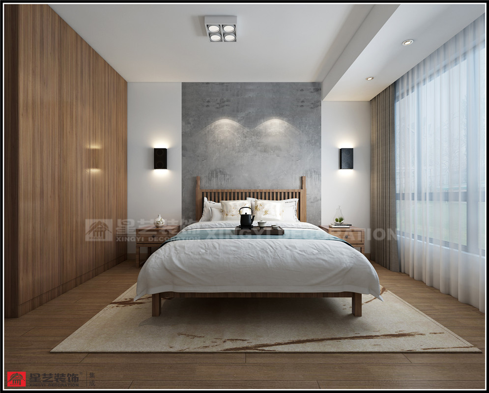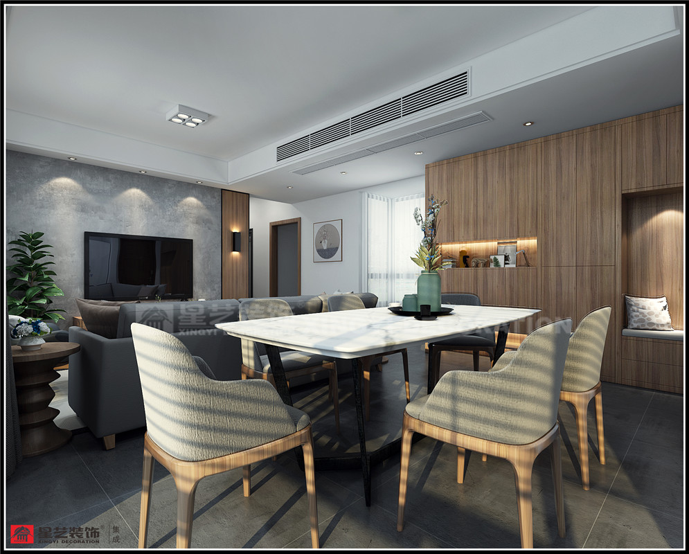 本方案為現代簡約風格,運用原始墻面水泥層,結合胡桃木色,體現了自然,舒適