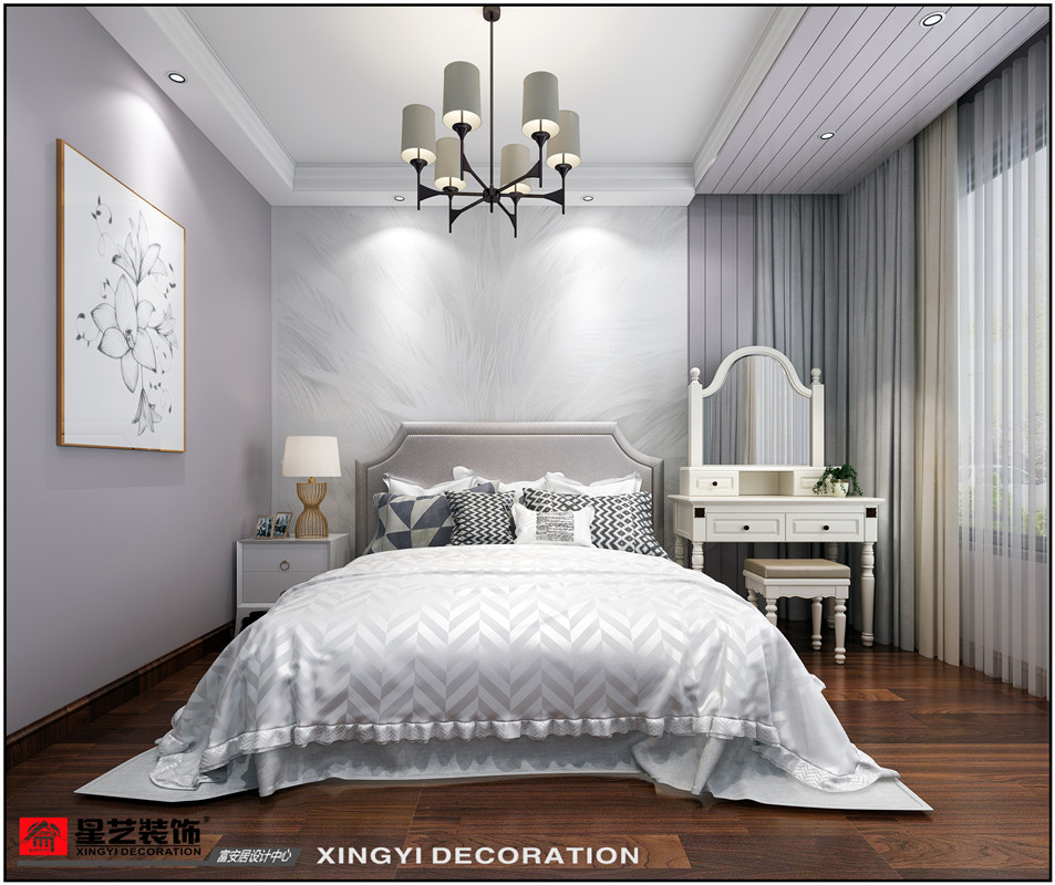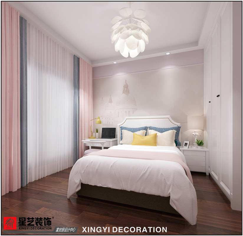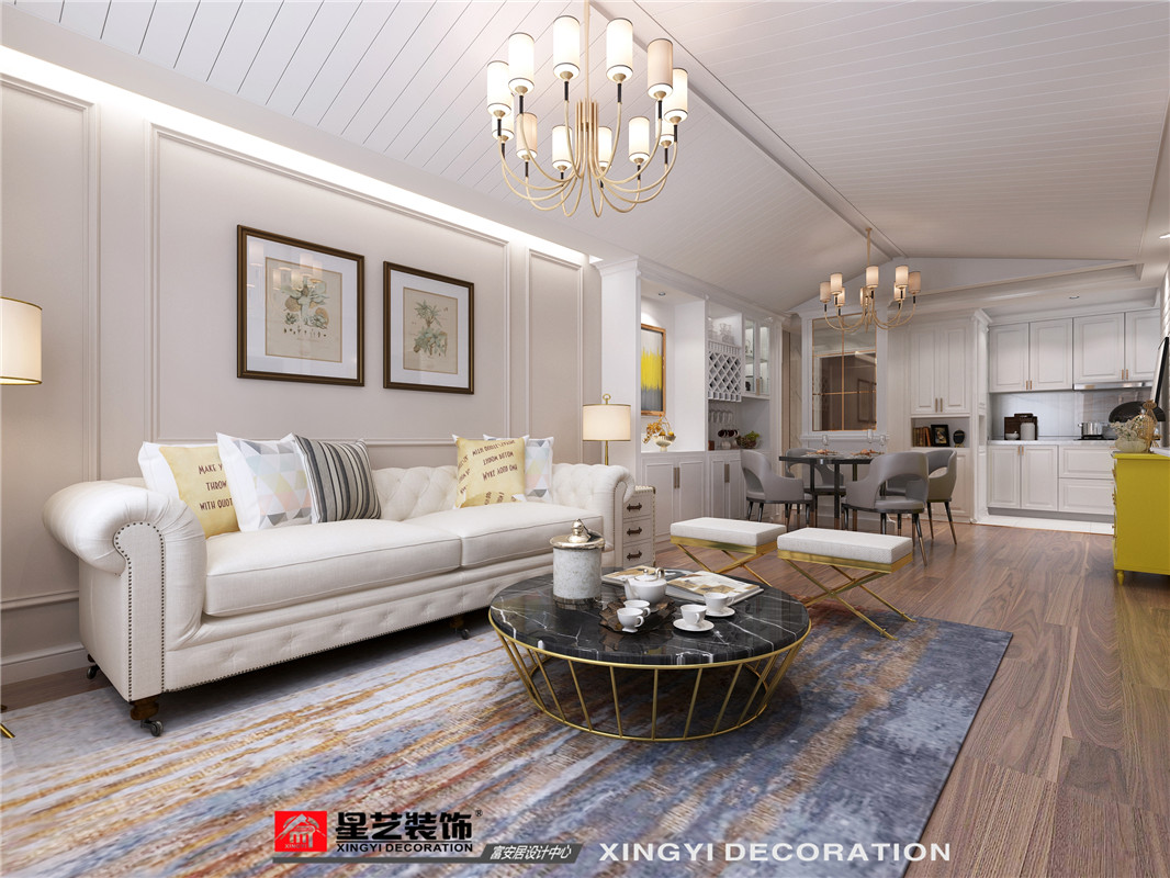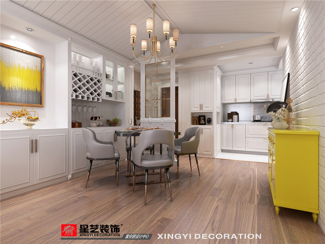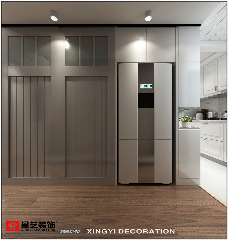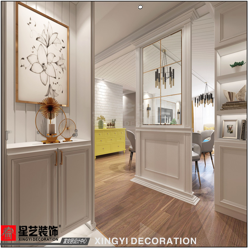 業主對設計及呈現效果的要求相對較高,所以在選材用材方面都朝相對高端的品牌來選擇。業主30歲出頭職場女性,自身審美水平較高,房子常住人口只有業主和她5歲的女兒,擁有一套美式風格的房子是業主一直沒有實現的夢想,護墻板和文化磚的使用也是業主著重強調必須要運用的,白色、粉色、紫色是業主和女兒最喜歡的顏色,業主表示她和女兒都有一顆浪漫公主心。布局上打破常規的格局,公共區域形成環形空間,營造一個圍合溫馨的親情空間。用色上主體為白色,主臥和女兒房采用了紫色和粉色作為主調,滿足業主對色彩選色的期待。房子凈高2.75米,大梁40公分,采用了斜頂的設計,更好的隱藏了大梁,向上的延伸感也拉高了空間。