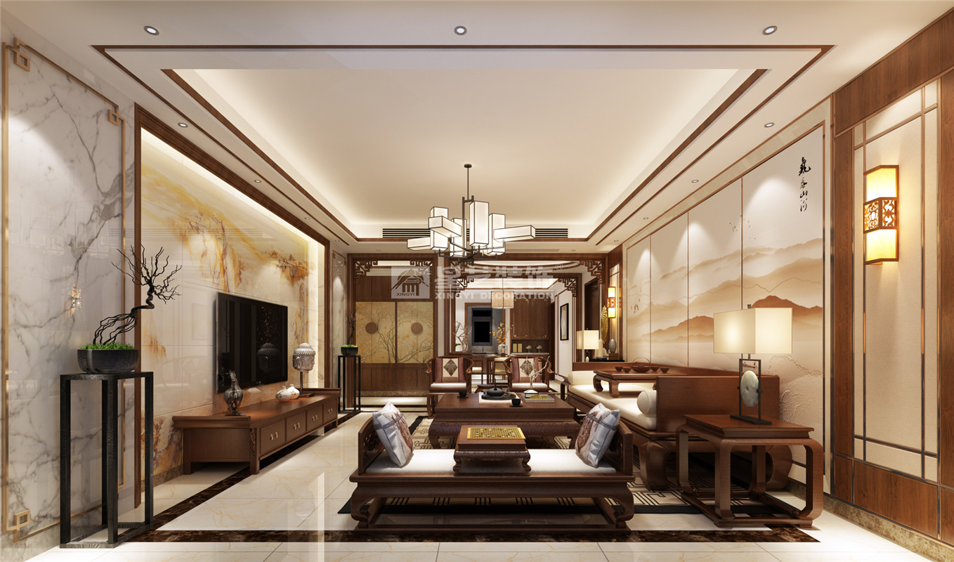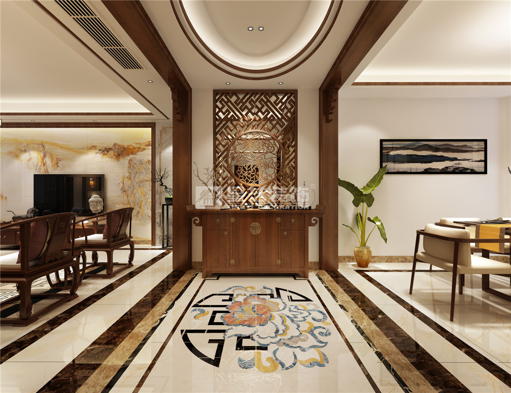 男業(yè)主的年齡在45歲左右這樣子,一開始就很明確家里裝修選擇中式風格。入戶設(shè)計屏風隔斷,不僅將入戶區(qū)域空間完美呈現(xiàn),而且解決了房子過道偏長直沖臥室門的問題。把生活陽臺保留,景觀陽臺處封窗做品茶區(qū),與客廳動靜結(jié)合相益得彰。將主臥室與旁邊的臥室打通形成大套房,空間大而舒適,提升業(yè)主的生活品質(zhì)。設(shè)計元素:花格、木線條、墻布、紅木家具、中國畫、不銹鋼金屬條等。