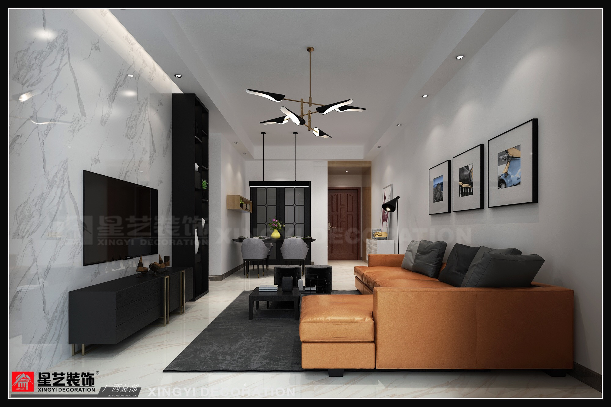 現代港式風格,常住人口三人,小夫妻倆喜歡簡潔明了的感覺,不喜歡太花俏的,而且很注重收納空間,因我們在設計上設計了大量的儲物柜,電視墻一方面做得簡潔大方,也在右邊設計了一個收納展示柜,平常去旅游帶回來的工藝品就有地方展示啦,再配上港式的皮沙發,餐廳上有趣的吊燈,讓整個空間變得更加有趣,更加靈動。