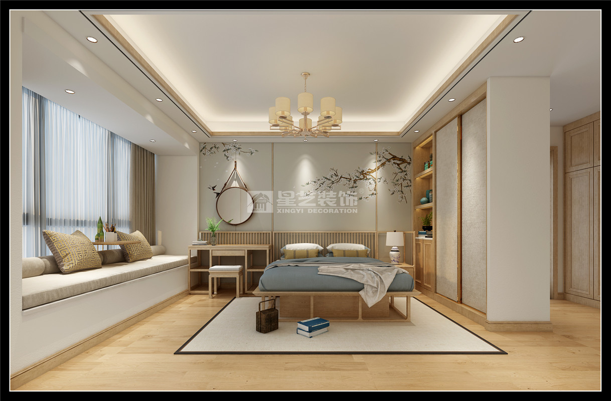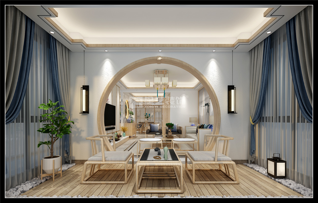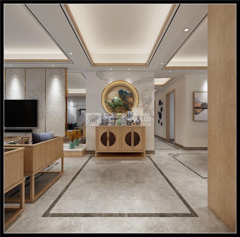 本案以原木色為基調,一改傳統中式紅木色的沉重壓抑感,使整個空間感覺更加富有禪味,厚而不重,有格調又不顯壓抑。