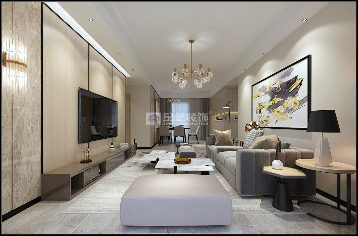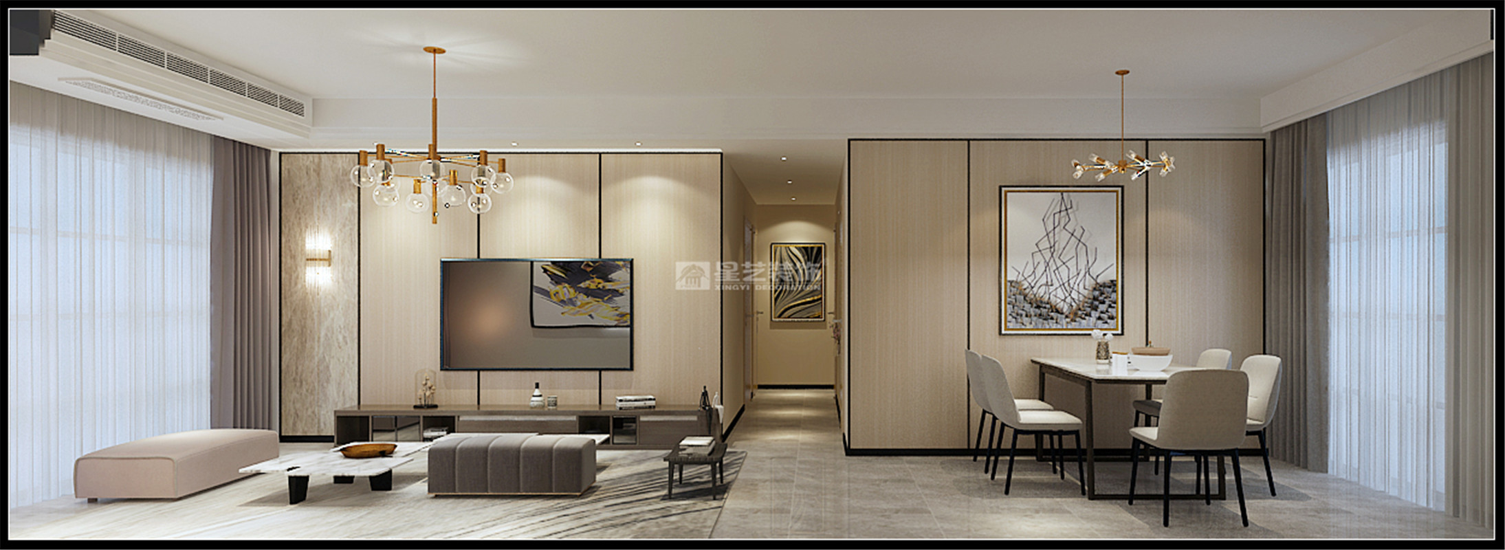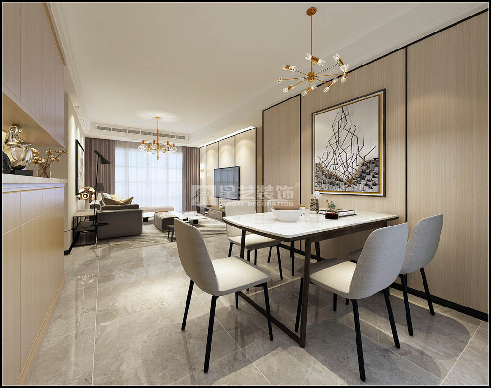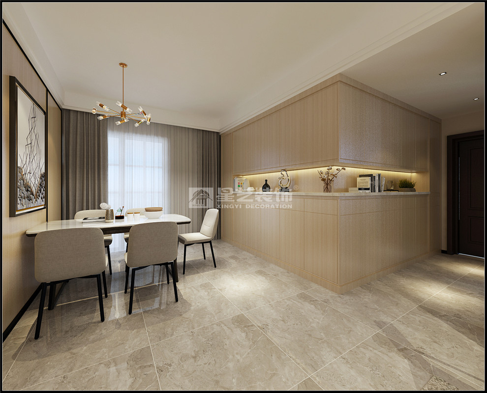 家以外與不同的人溝通,在不同的環境交流,視覺聽覺一天下來大概會疲憊。回歸家庭,硬裝設計結合,軟裝設計簡練的線條感減去視覺繁雜,石材、木質、絨面、統一的色彩表達溫暖與安靜。