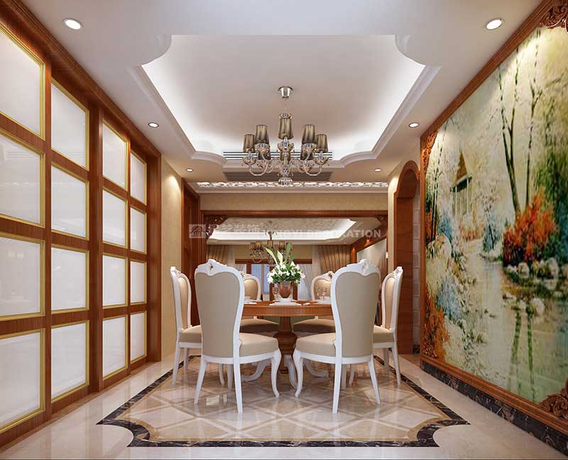 “沉醉奢華”是典型的古典歐式風格,這種風格的特點是典雅華貴,具有濃厚的文化氣息。在造型上,以歐式線條勾勒出不同的裝飾造型,氣勢恢宏、典雅大氣。在色彩上,運用深色木等古典常用色來渲染空間氛圍,營造出富麗堂皇的效果。在材質(zhì)上,采用仿古地磚、歐式壁紙、大理石等,強調(diào)了穩(wěn)重、華貴與舒適。氣質(zhì)沉穩(wěn)高貴,細節(jié)雕刻精美,洋溢著古典的穩(wěn)重華麗。在配飾上,以華麗、明亮的色彩,配以精美的造型達到雍容華貴的裝飾效果。局部點綴綠植鮮花,營造出自然舒適的氛圍。