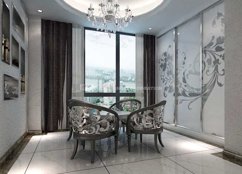 本案地處南寧市柳沙半島,擁有獨(dú)特的地理位,地高勢(shì)且面向一線江景,可謂居家之風(fēng)水寶地。業(yè)主是一對(duì)新婚的夫妻。以客廳和餐廳及開放式廚房為中軸線貫穿的設(shè)計(jì)主次分明,通風(fēng)效果利用到了極致,白色的歐式家具與進(jìn)口墻布和水刀切割的精致拼花相互搭配,豐富著室內(nèi)的生活氣息,時(shí)尚而又華麗,浮現(xiàn)出一幅美麗的畫面,令人心曠神怡,,同時(shí)也是象征著一對(duì)新人愛(ài)情的神圣與純潔。