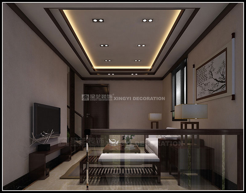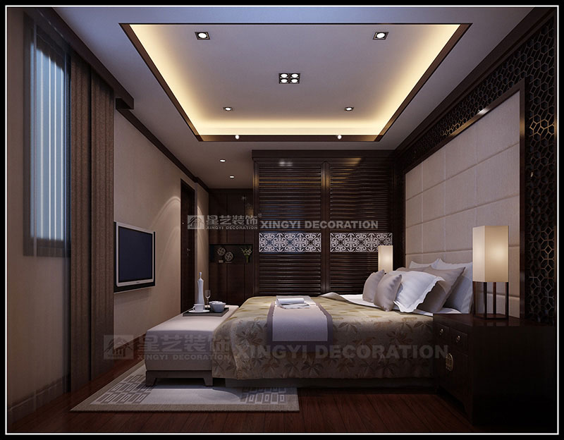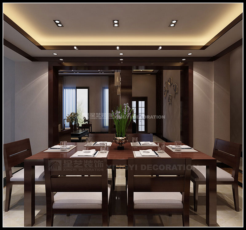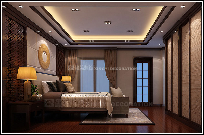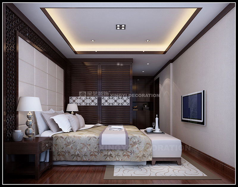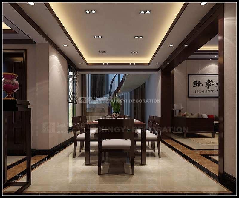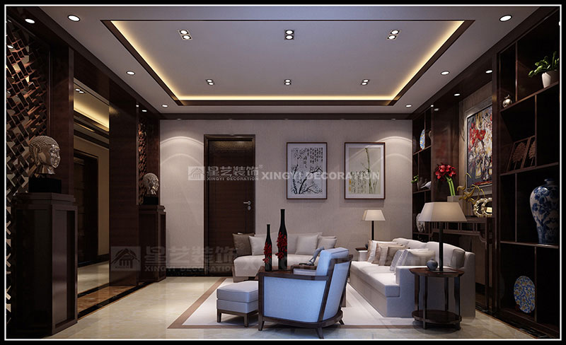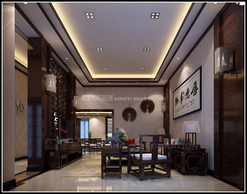 本案設計為現代中式風格,以東方傳統文化內涵為設計元素,去掉繁復細節,以現代簡約的造型藝術詮釋東方神韻。運用帶有歷史韻味的裝飾符號:選用深色木制家具及極少的金屬裝飾;色彩以深木色、米黃、咖啡等色調相配合;舒適、自然地把東方味道發揮得淋漓盡致,看似簡單隨意卻又經得起時間的推敲。通過簡潔、大方的造型營造出富有生命力和文化內涵的藝術空間。