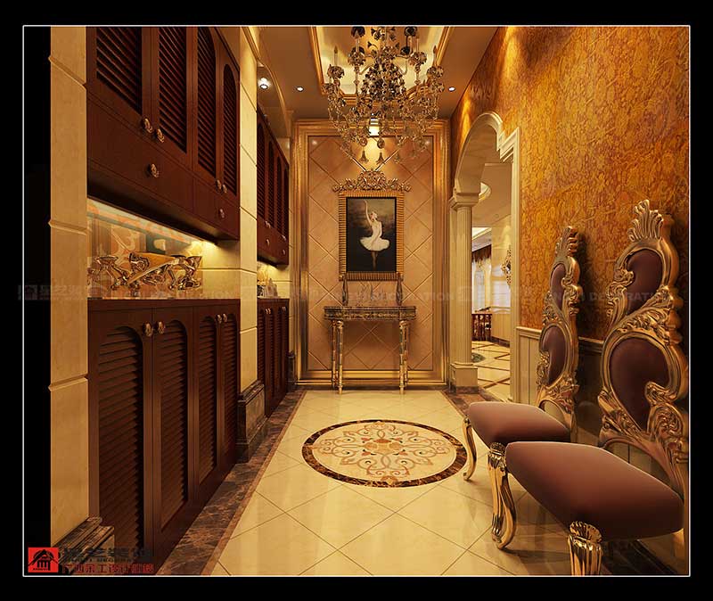 該案主要在創(chuàng)造一個(gè)現(xiàn)代奢華歐式主義的家居氛圍,從而來體現(xiàn)這種住宅形式的尊貴性和獨(dú)一無二性.在創(chuàng)意上,引入的是傳統(tǒng)的理念,但融入的卻是時(shí)尚與未來,這種設(shè)計(jì)理念立足于歐式浪漫的色調(diào),但又大膽利用了材質(zhì),燈光等元素的融會(huì)貫通,從而以古喻今,復(fù)古式的高貴華麗與最新時(shí)尚巧妙結(jié)合,強(qiáng)調(diào)了空間里的意境創(chuàng)造.在尊重原有建筑結(jié)構(gòu)功能的基礎(chǔ)上,對(duì)空間構(gòu)架結(jié)合創(chuàng)意元素進(jìn)行了深入理解,從而做到:去粗取精,去偽存真,強(qiáng)調(diào)空間與空間之間的遞進(jìn)關(guān)系,滿足了一個(gè)富貴之家的全面功能需求.