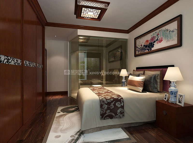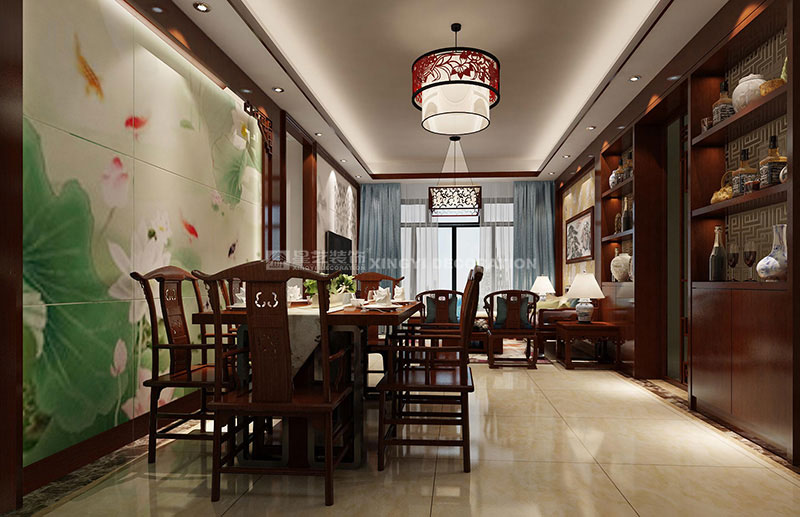 瀚林御景110平裝修案例設(shè)計(jì)說明:紅木家具就需要中式風(fēng)格才能搭配起來。打開大門就直接看到餐廳,所以我在餐廳做了荷花圖案,和和美美的生活。廚房的墻全部拆除做對稱的酒柜,為了公共區(qū)域能成為一個整體,我把酒柜和沙發(fā)背景連在一起,使得空間開闊大氣。女兒房做榻榻米墻面做書柜能節(jié)省空間。兒子房用了尼維熊是為了活躍男孩的性格,讓他慢慢變得開朗。考慮到主衛(wèi)是私人空間,所以就改用鋼化玻璃隔墻,增加夫妻感情情趣。