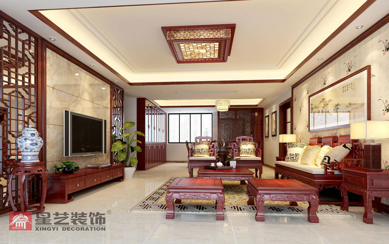 中式風格在家居布局上講究方正、對稱的布局形式,講究整體的布局和風水格調高雅,造型樸素優美,色彩濃厚而成熟。中式風格的裝飾主要體現在傳統的家具,再輔以字畫、盆景,陶瓷、古玩、屏風等裝飾品,最求的是一種修身、齊家的生活境界。在整體的色彩選擇上以莊重的紅為主,體現中式文化深沉、厚重的底蘊。中式風格在整體的布局上雖然最求對稱莊重,而在細節上有更傾向于自然情趣、花鳥魚蟲等精細雕刻,取其美好的寓意來表現人們對美好生活的追求。