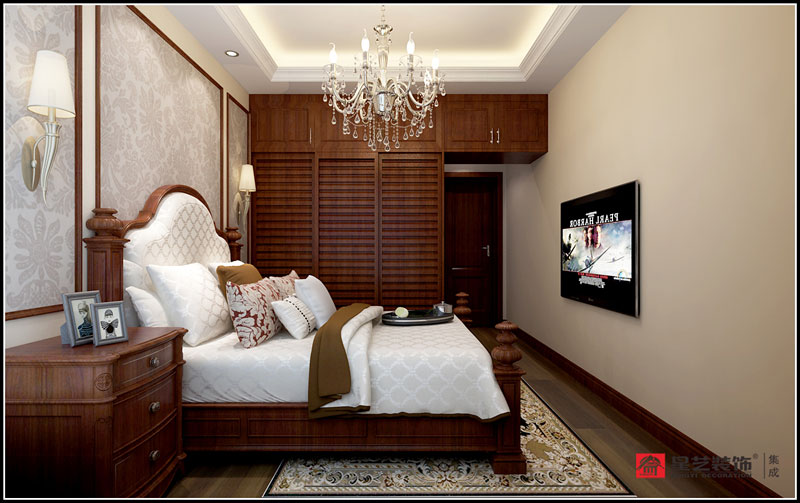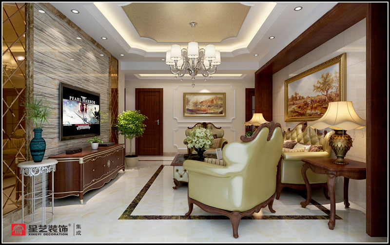保利愛琴海105平簡歐風格設計賞析:溫暖的木質感打破整體灰調的冰冷,奠定空間沉穩質感的氛圍,配以簡單的花紋和色彩,讓整個空間隨意而自然,輕松自在