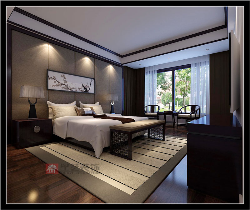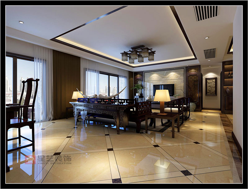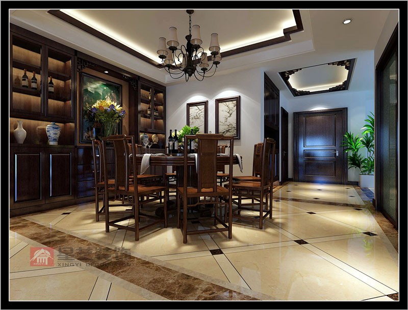 本戶型采用新中式的設(shè)計(jì)風(fēng)格手法來進(jìn)行整體的調(diào)性設(shè)計(jì),本戶型整體面積較大,考慮運(yùn)用進(jìn)新中式風(fēng)格一方面讓空間有足夠的氣場(chǎng)體現(xiàn)戶型,一方面用人們熟悉的具有代表性的中式家具來打動(dòng)客戶,整體以古典古香的基調(diào)、家具與裝飾的搭配為主,利用古老的家具——紅木的家具、太師椅、有雕飾的裝飾品以及燈光等等增添新中式原有的味道!