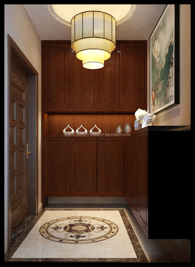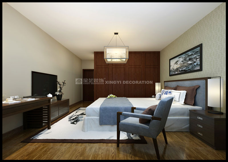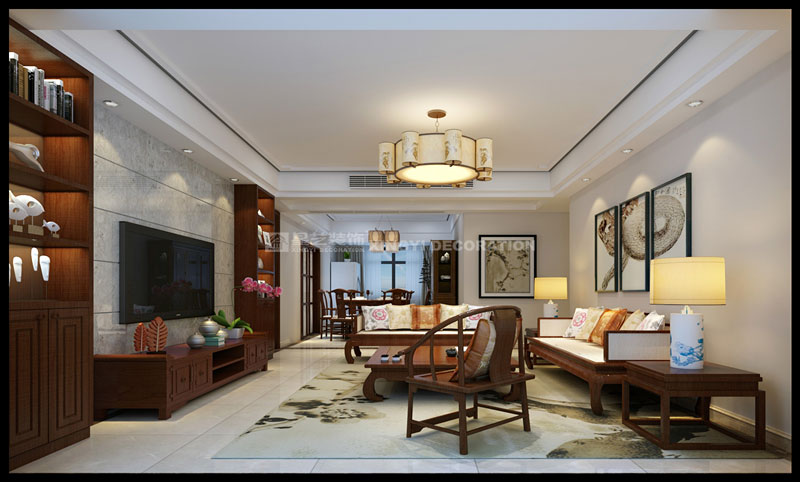 鳳景灣140平三居室現(xiàn)代中式裝修案例