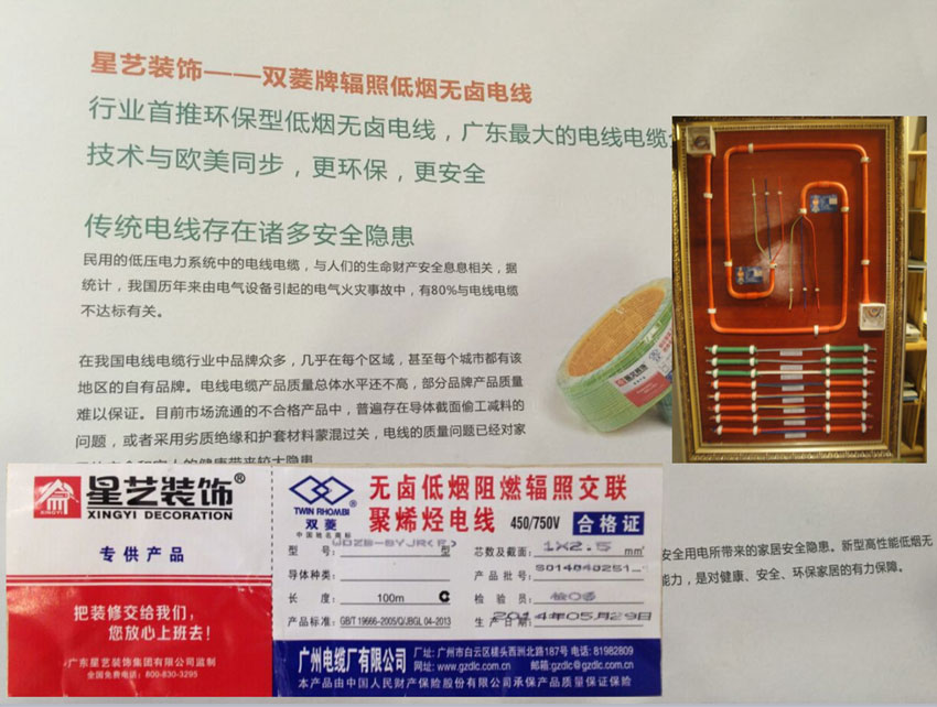1、強電采用廣州電纜廠有限公司正牌正廠出產低煙無鹵阻燃輻照交聯聚烯涇雙菱電線,每一卷電線都有“身份證”(代碼)。